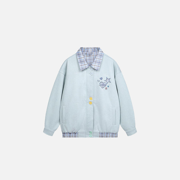 DETAILSThickness: StandardPattern Type: LetterMaterial: AcetateDecoration: Embroidery, Patch Designs, Pockets, ZippersCollar: StandClosure Type: zipper