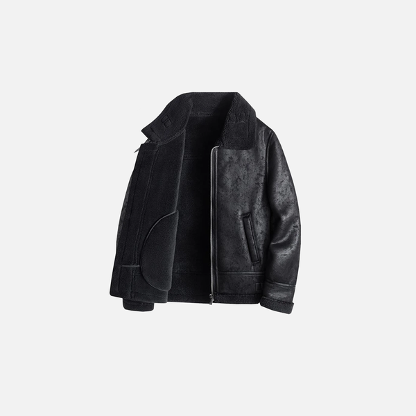 Warm Retro Minimalist Suede Lapel Leather Jacket