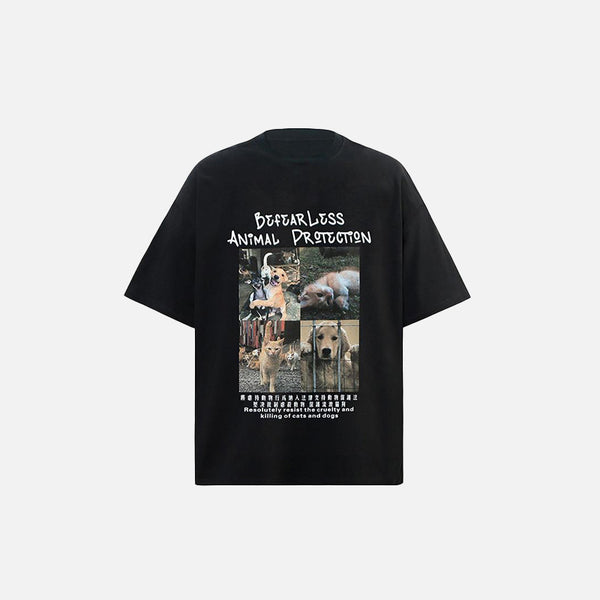 Front view of the black Loose Animal Graphic T-shirt in a gray background