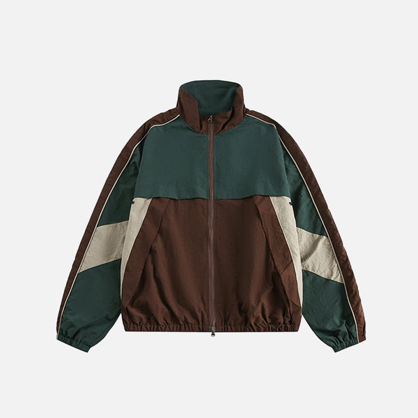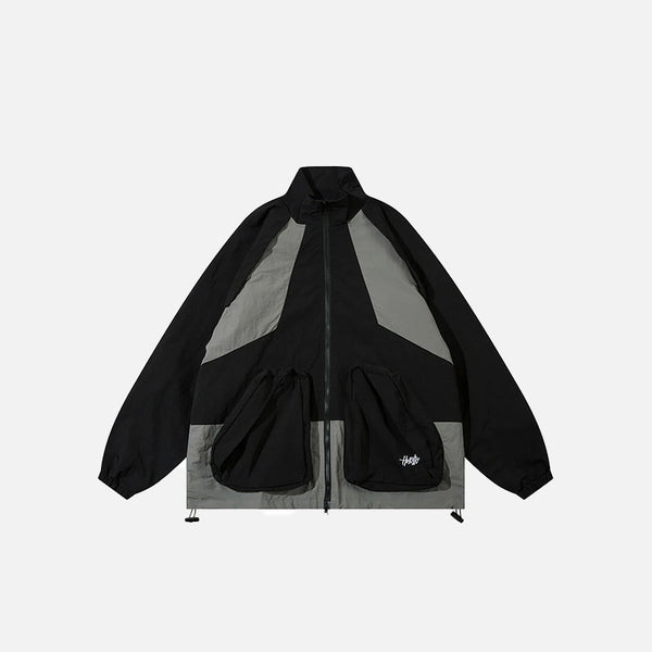 DETAILSLoose fitStandard thicknessPattern Type: PatchworkMade of polyesterLining Material: PolyesterDecoration: PocketsCuff Style: Rib sleeveStand collarClosure Type: zipper