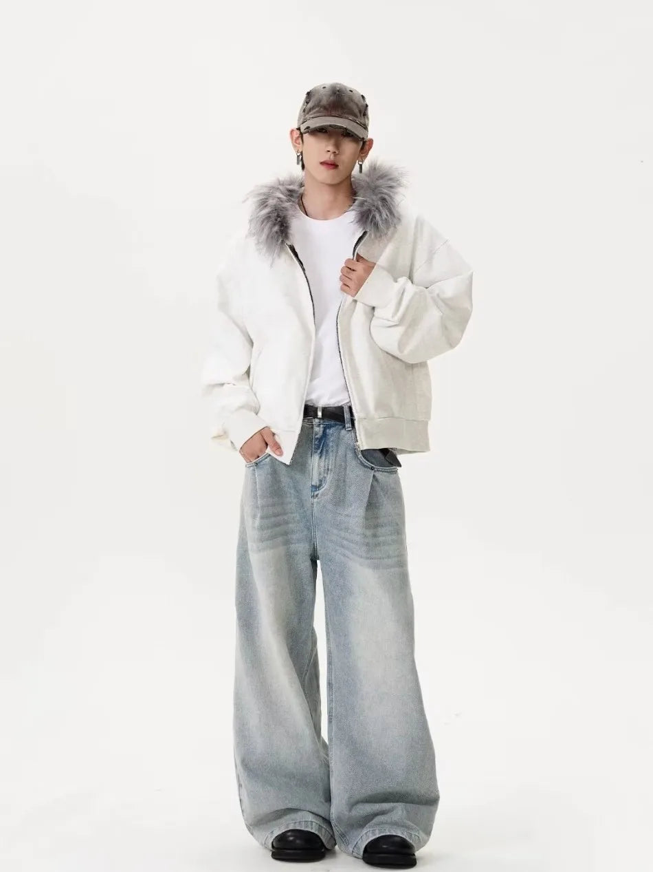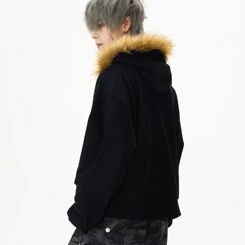 Herbstliches japanisches Kapuzenpullover mit Pelzkragen