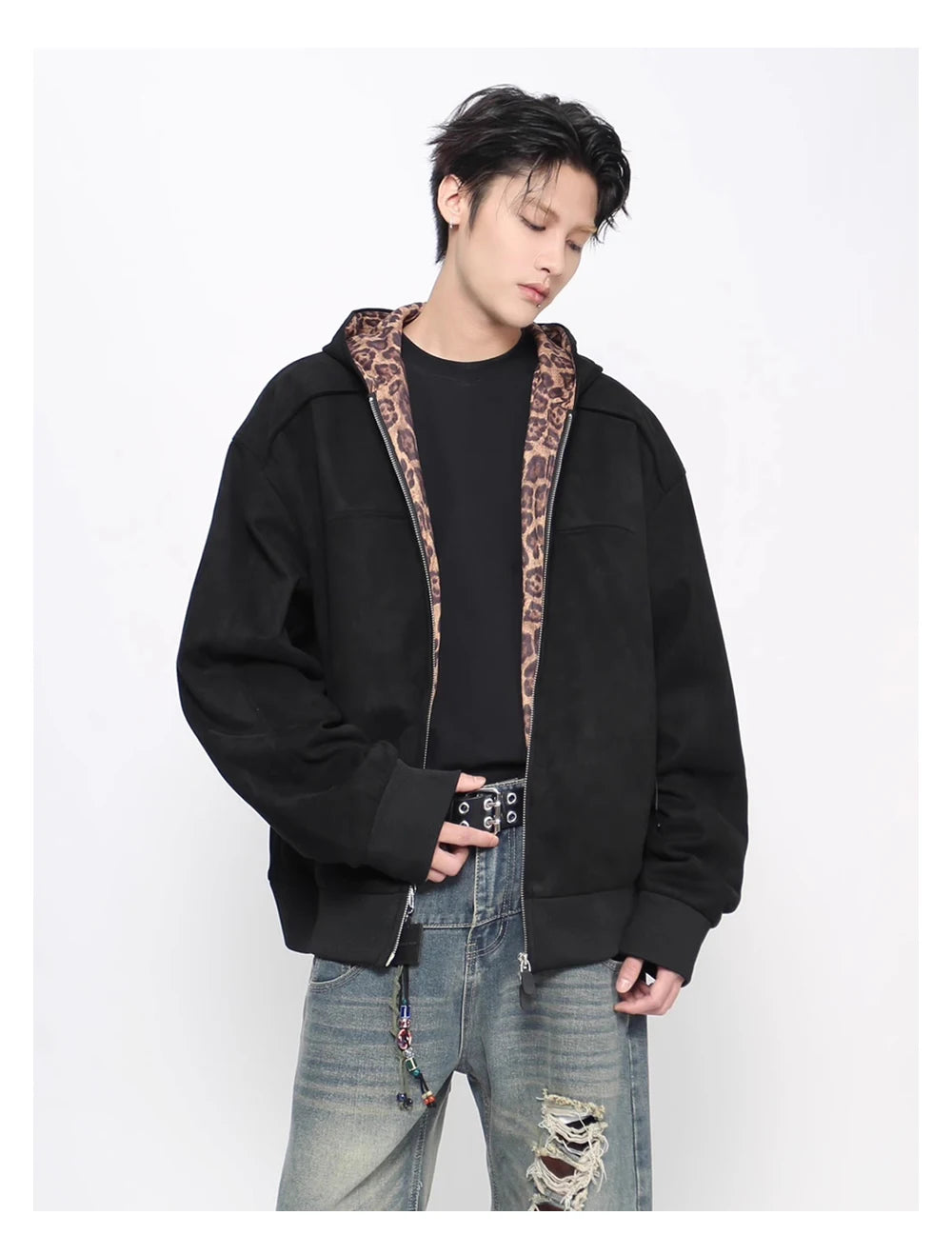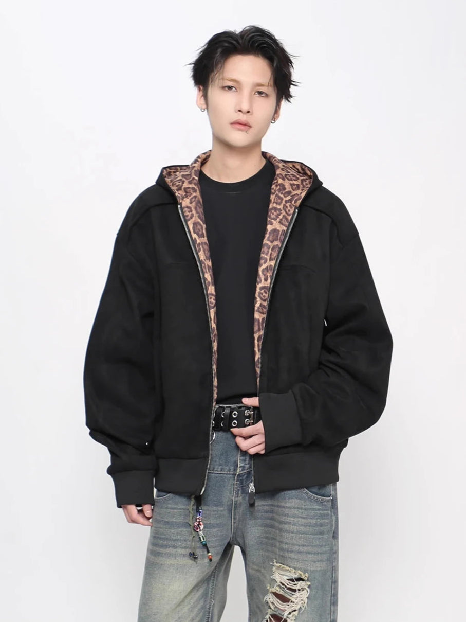 Autumn Leopard Spliced Hooded Sweatshirt
