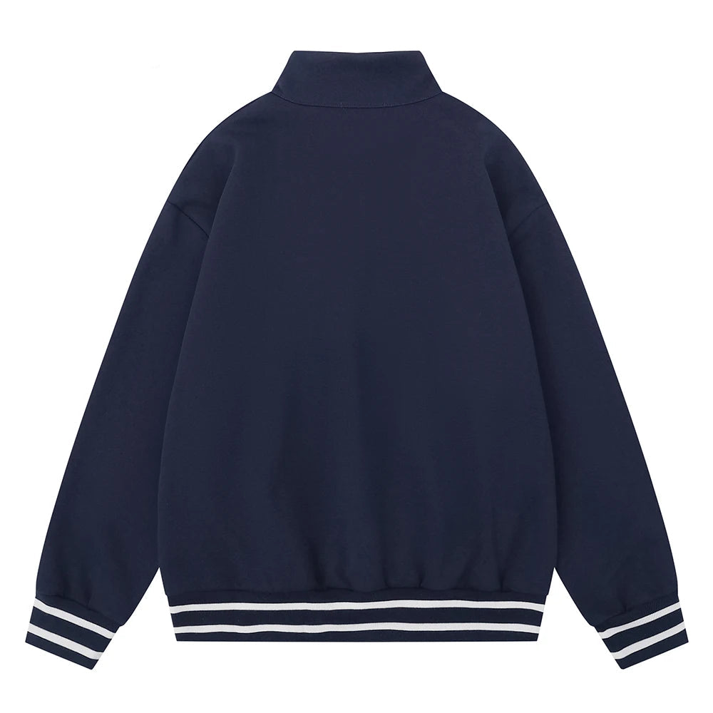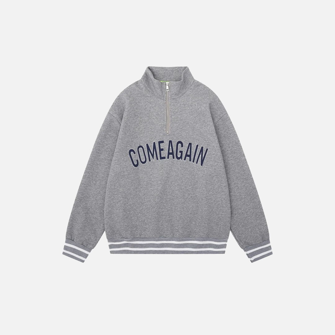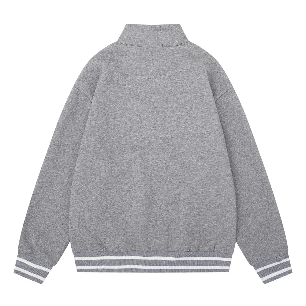 Casual Loose Letter Half Zipper Embroidery Sweatshirt