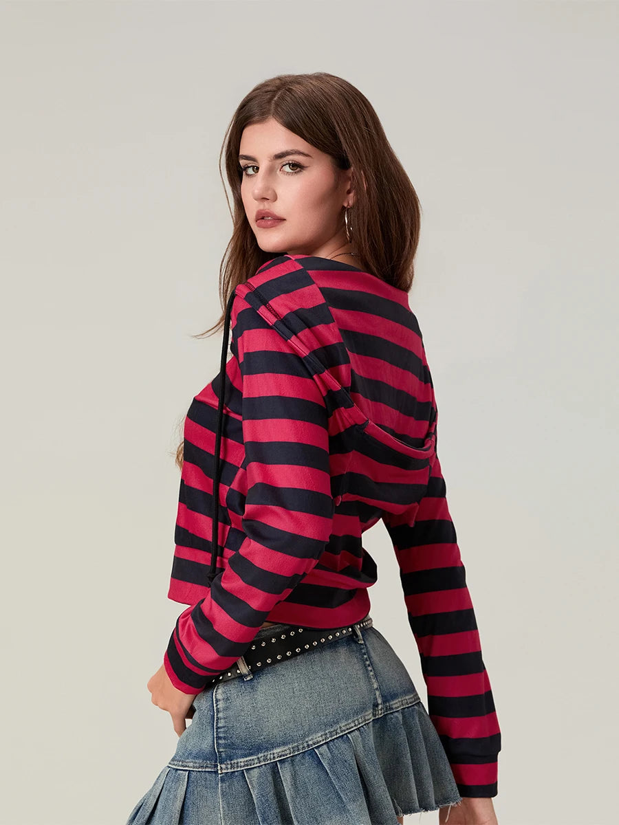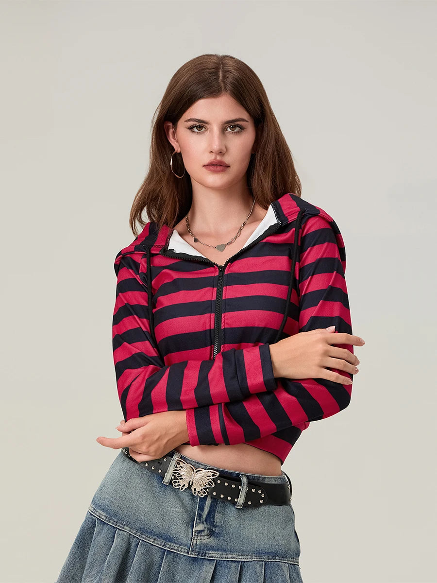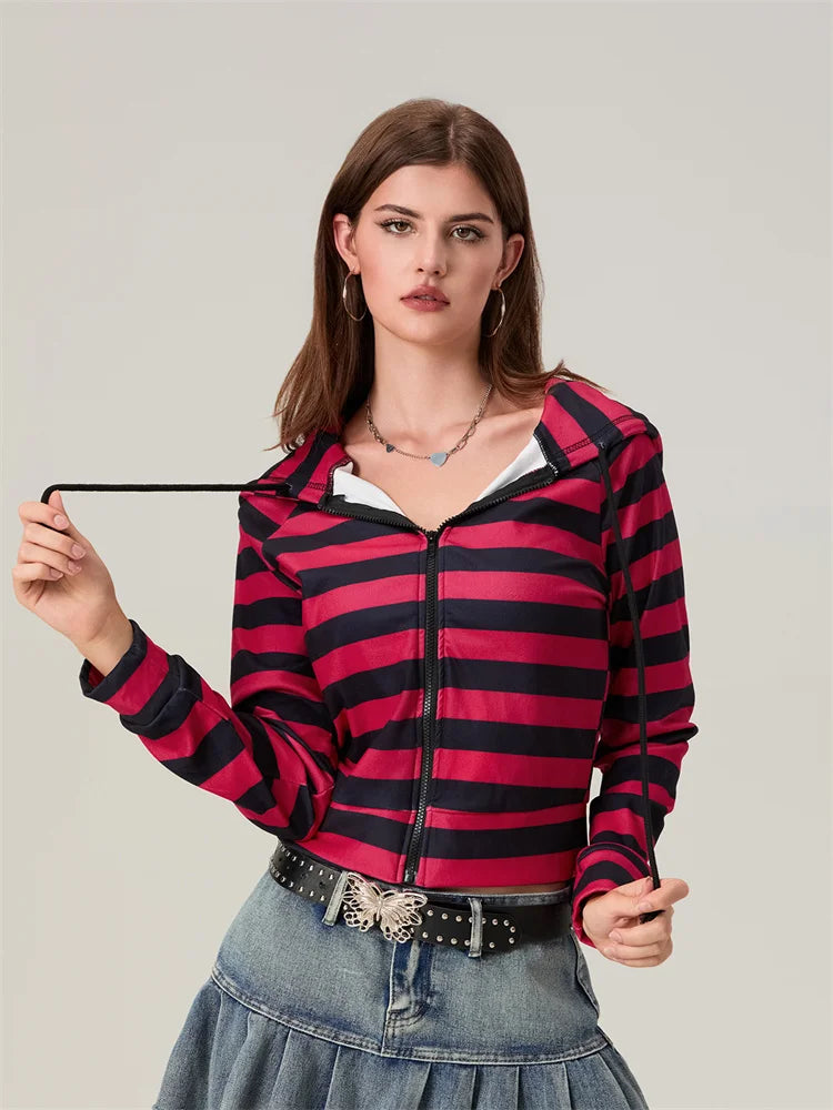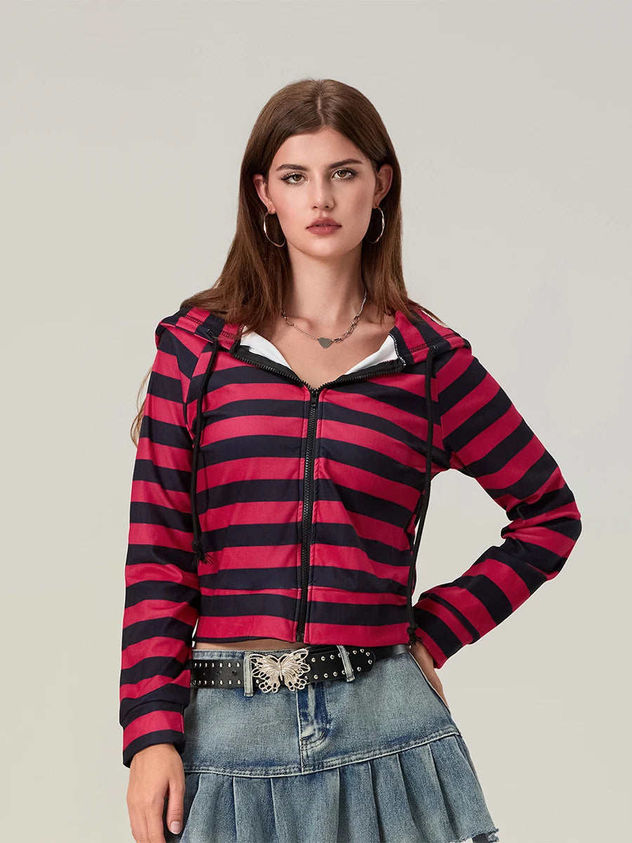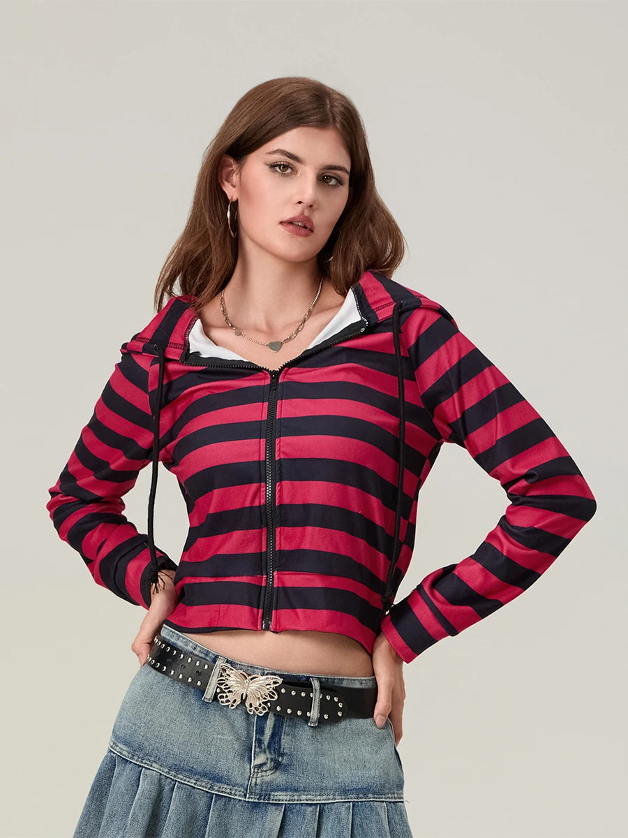 Easy Match gestreiftes Kapuzensweatshirt mit Reißverschluss