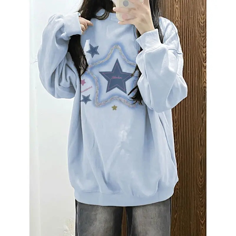 Müheloses, elegantes Sweatshirt im Preppy-Stil mit blauem Sternendruck