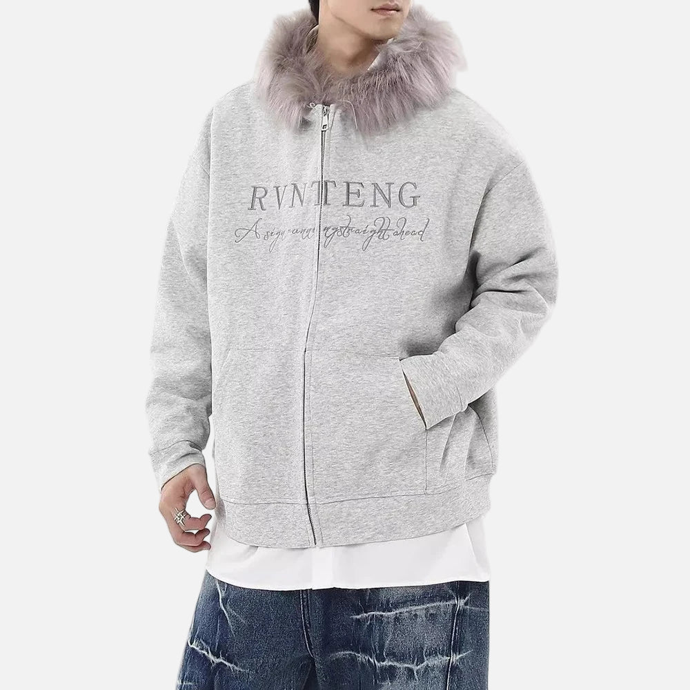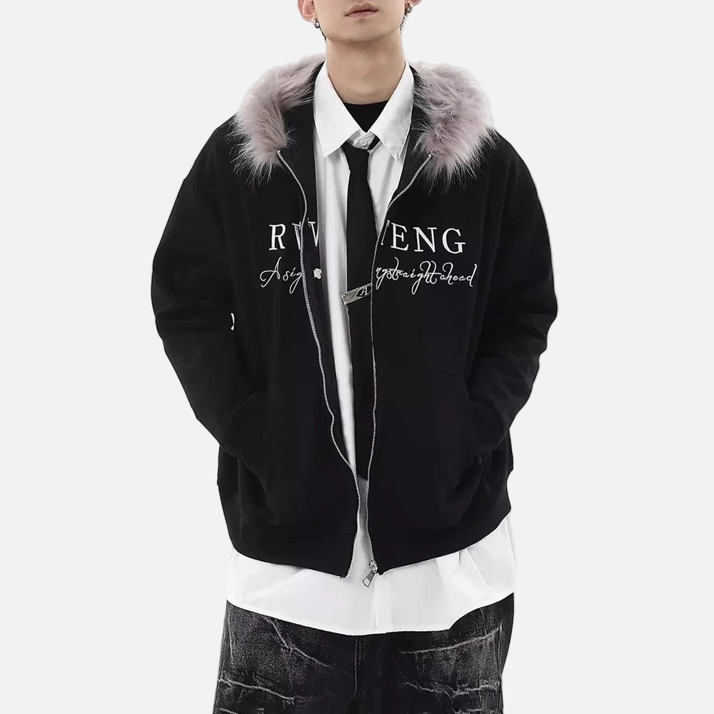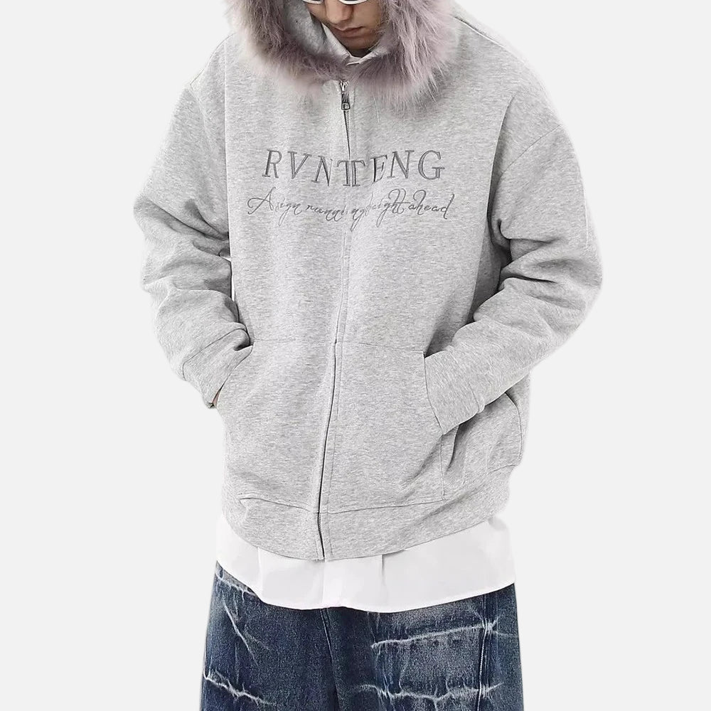Essential Casual Zipper Faux Fur Hooded Sweatshirt
