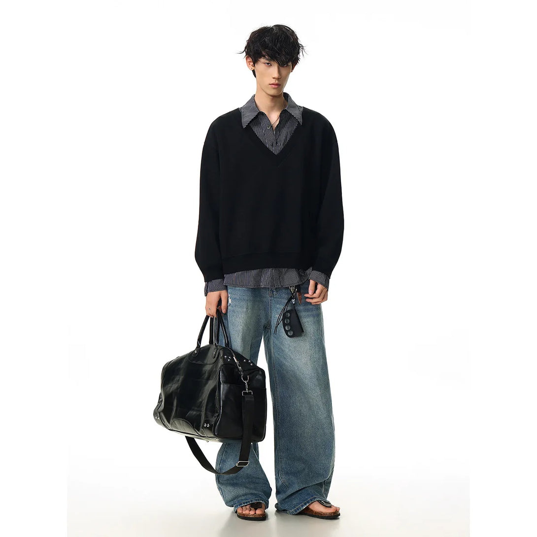 Schmeichelhaftes, lässiges, lockeres, gestreiftes Polo-Sweatshirt