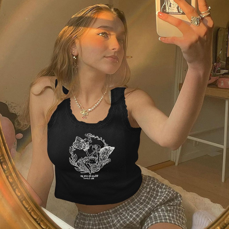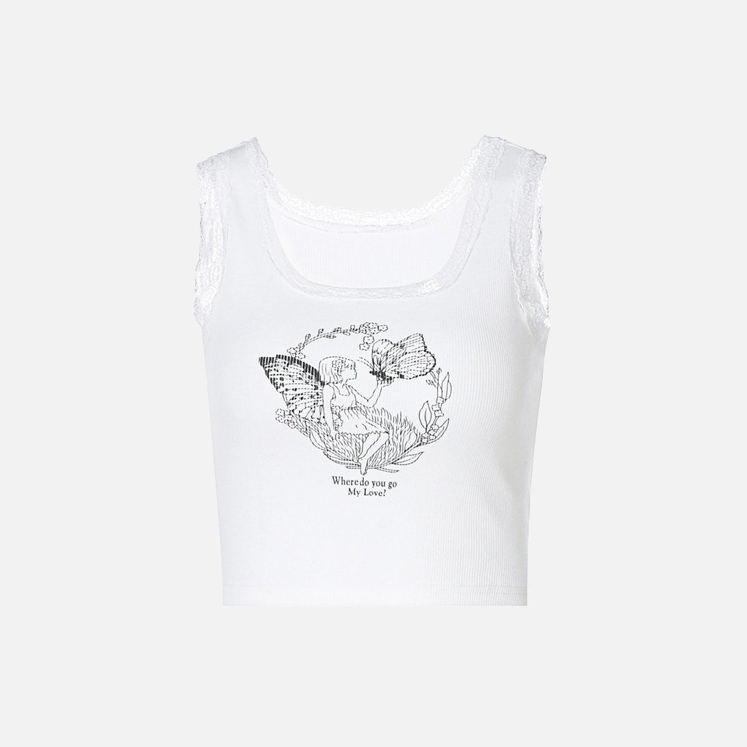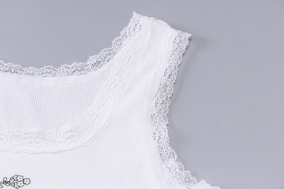 Ärmelloses Crop-Top mit Spitzenbesatz