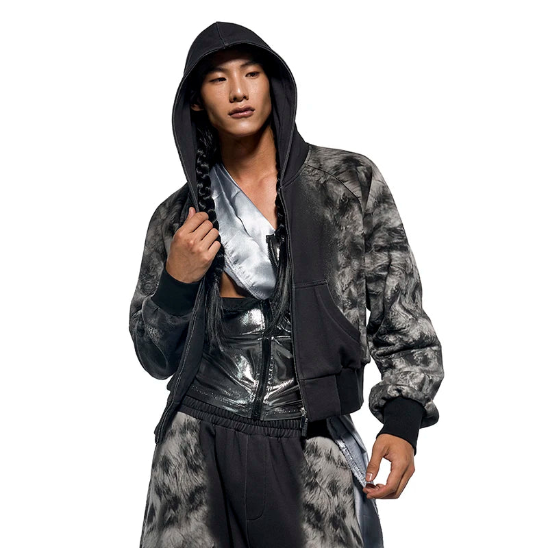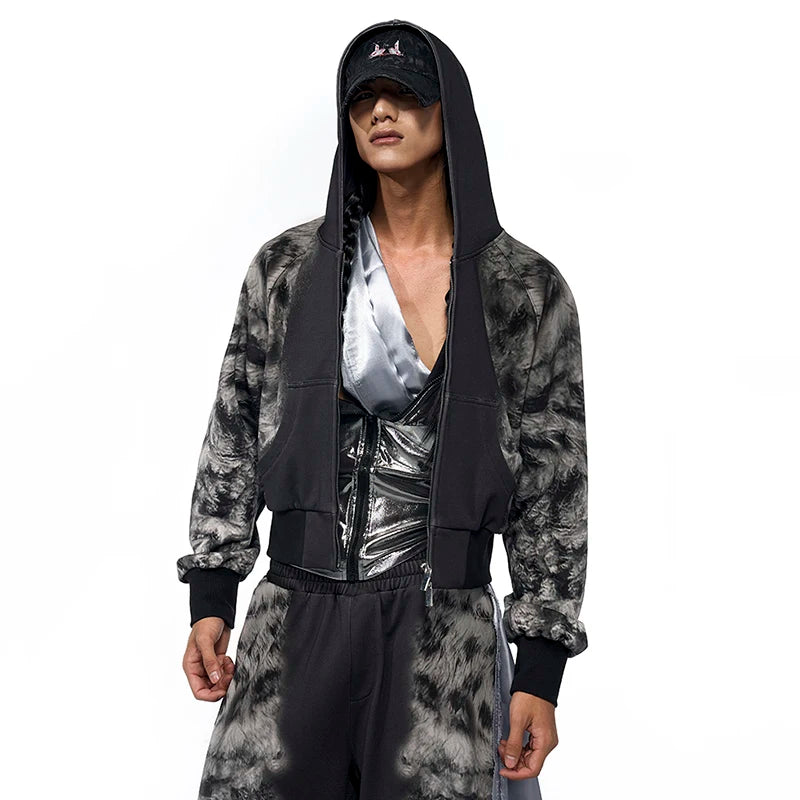 Kapuzenpullover mit Reißverschluss und Leoparden-Streetwear-Print