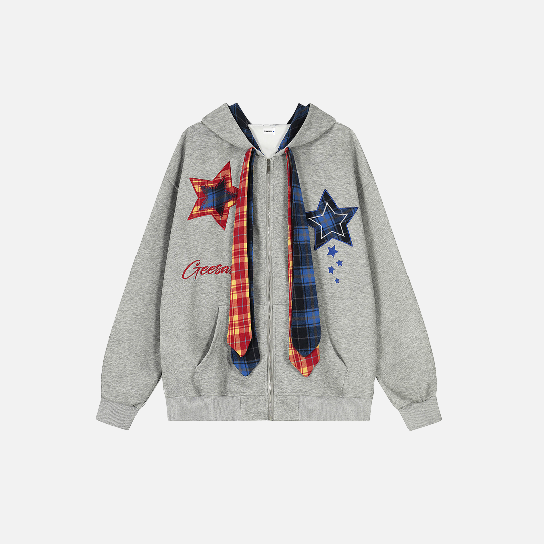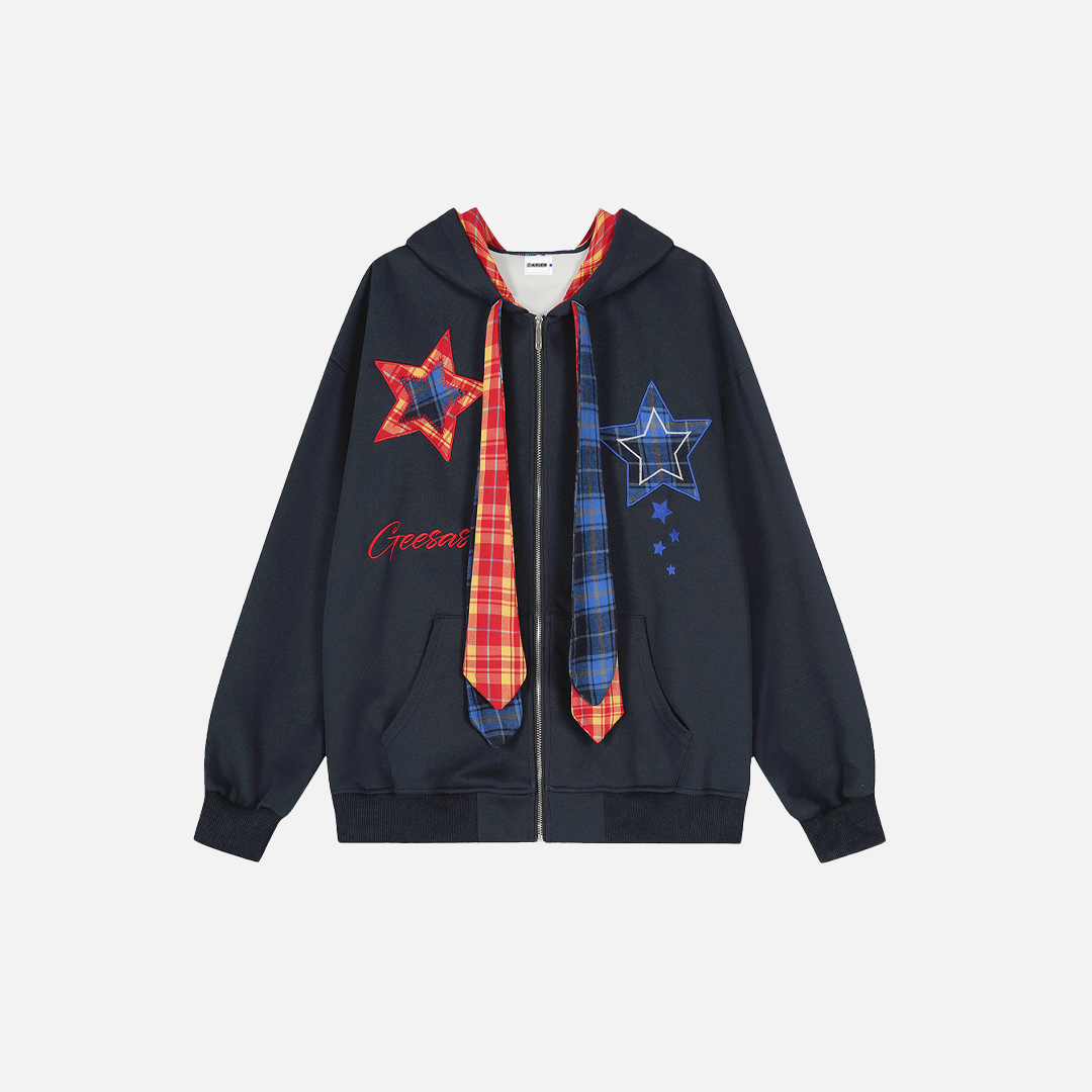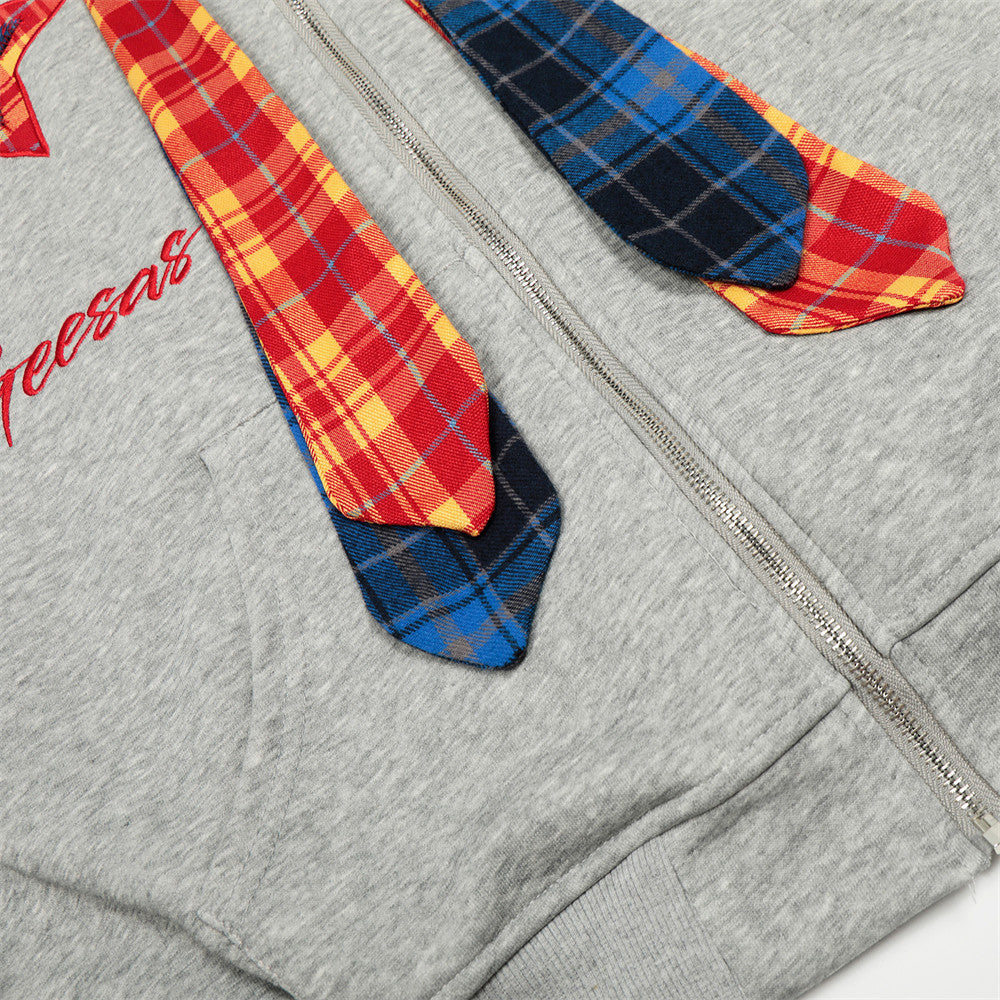 Besticktes kariertes Patchwork-Kapuzenpullover für Herren