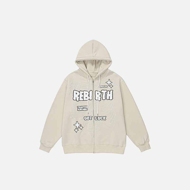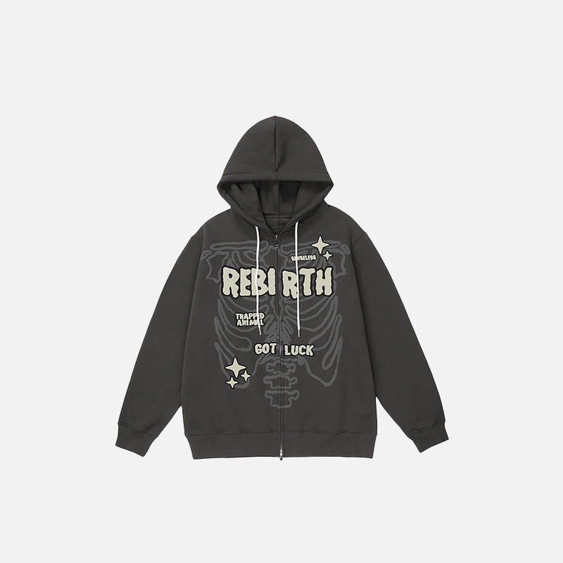 „Rebirth“ Skelett-Kapuzenpullover mit Reißverschluss