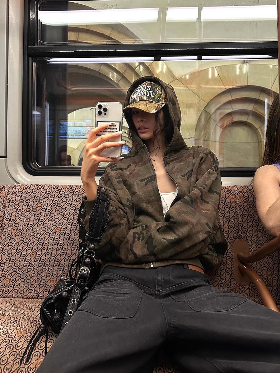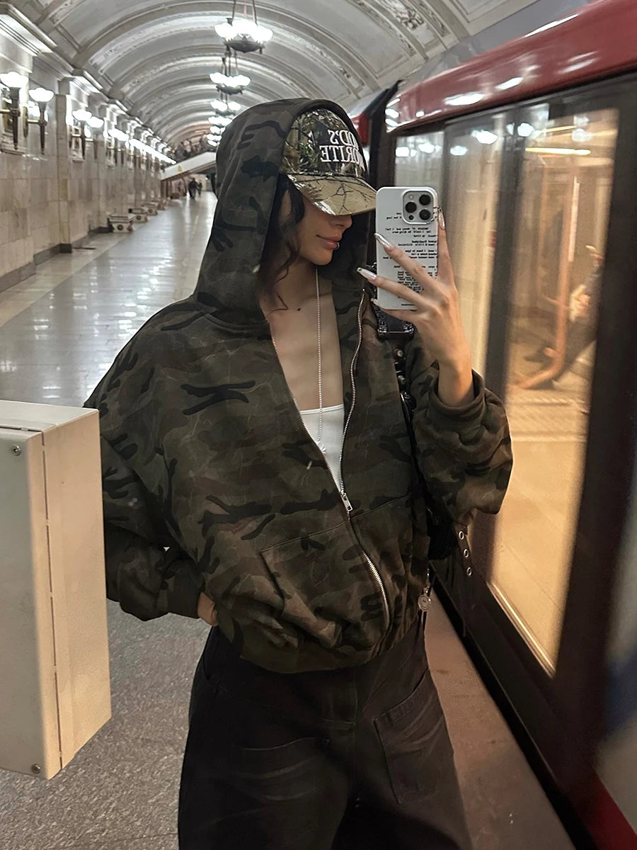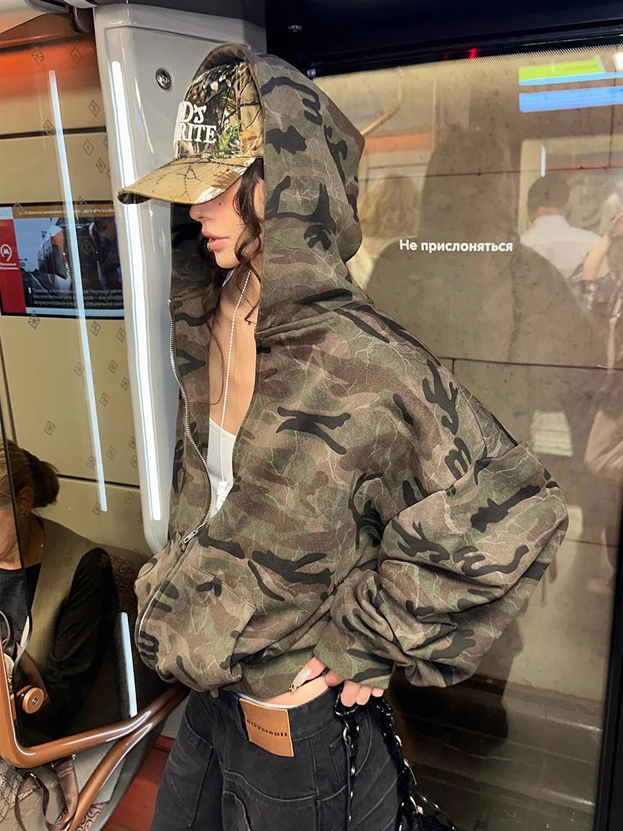 Reddachic – Oversize-Sweatshirt mit Kapuze und Camouflage-Muster