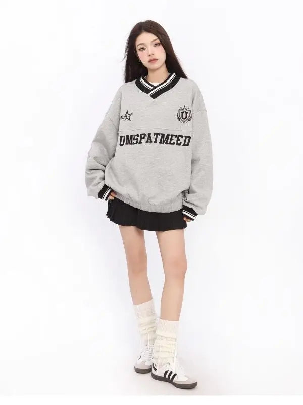 Hip Sweatshirt im Retro-Stil mit Buchstabenstickerei