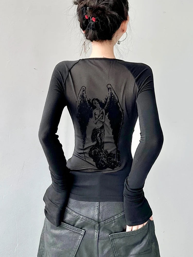 Elegantes, tailliertes Langarm-T-Shirt im Y2K-Stil