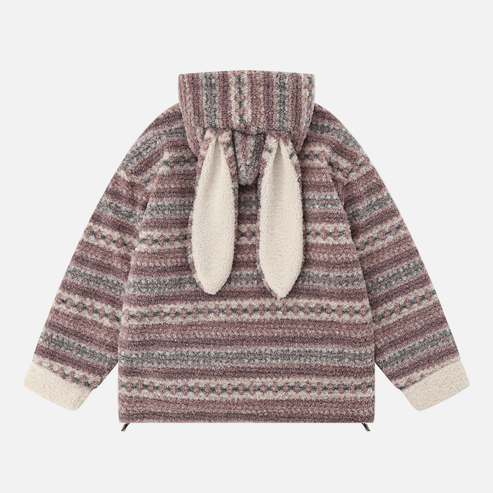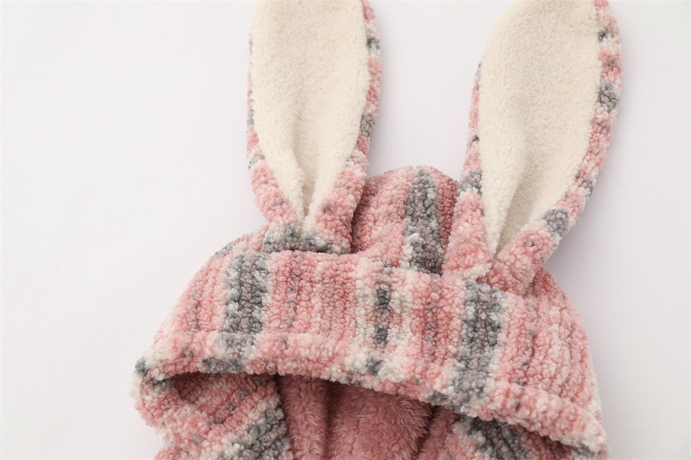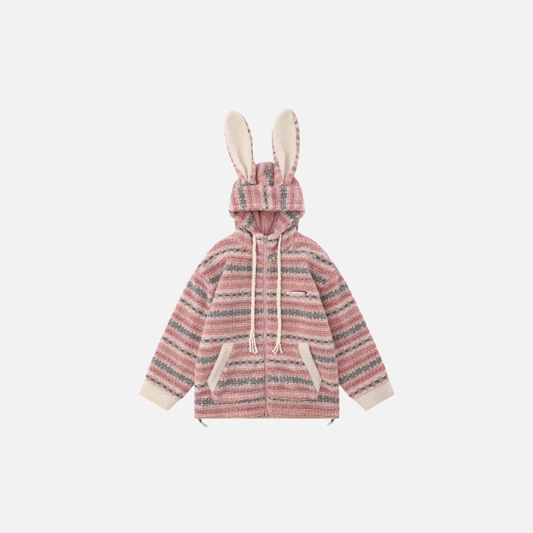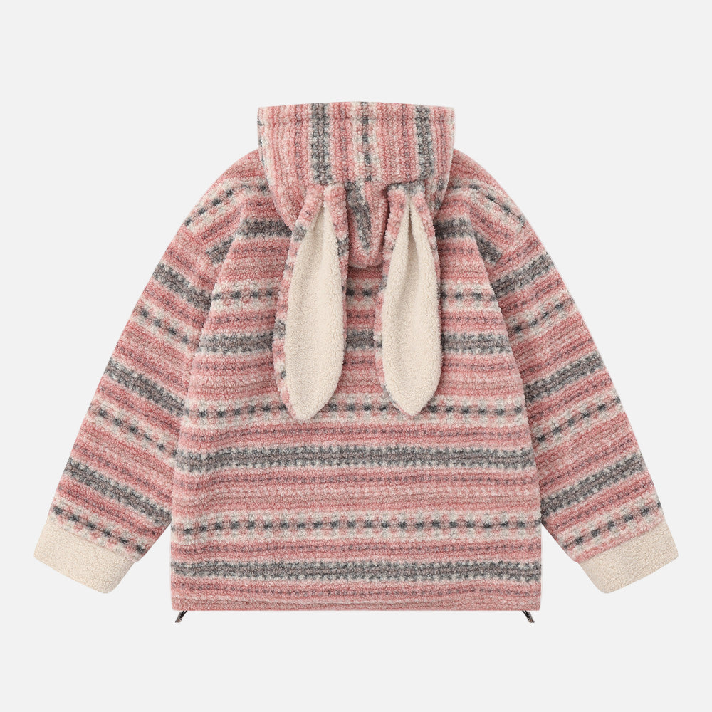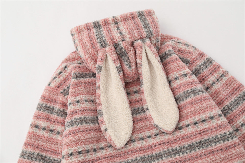 Soft Striped Winter Cartoon Rabbit Hooded Sweatshirt