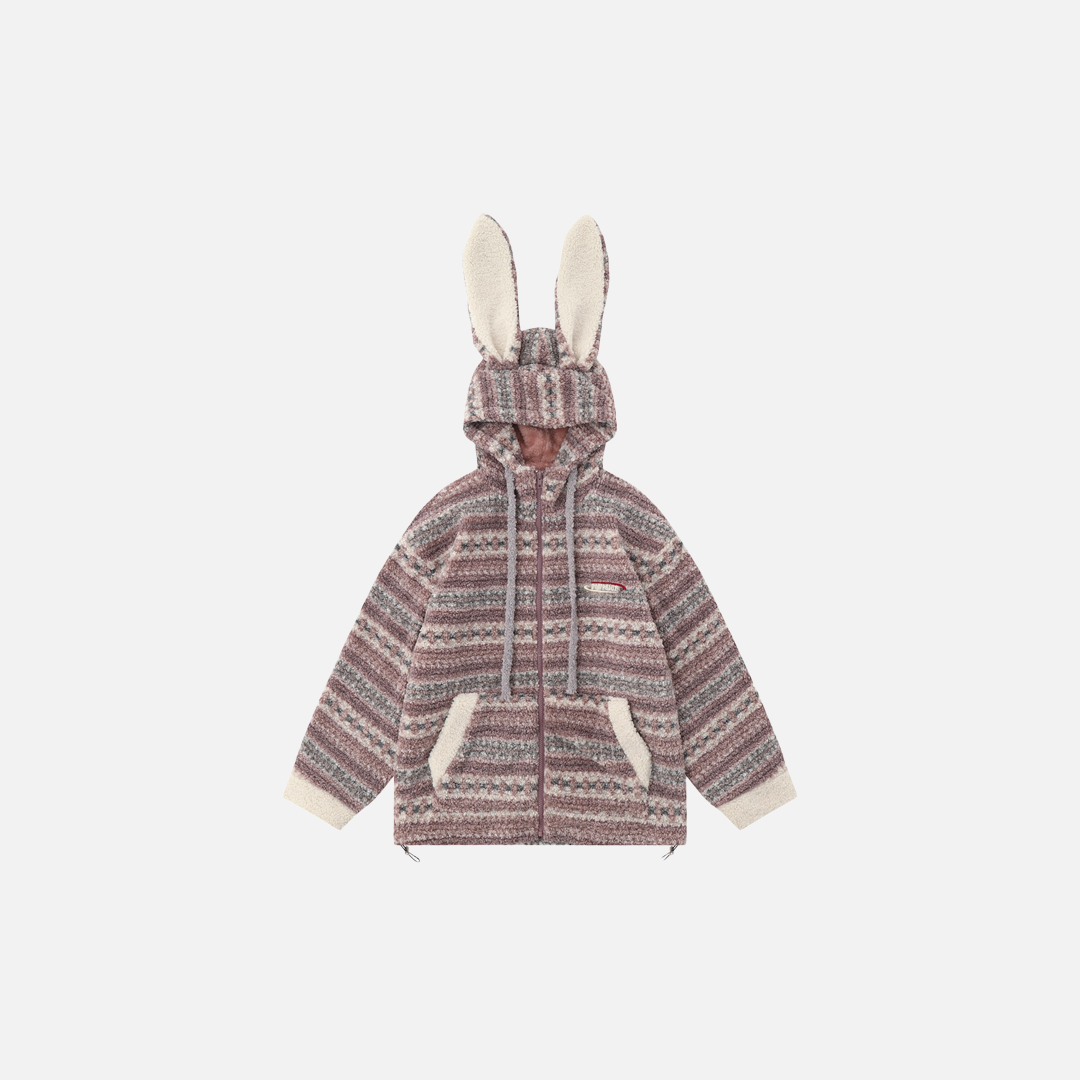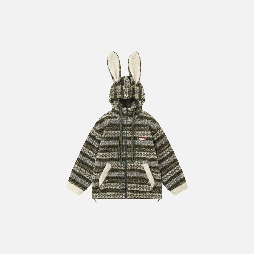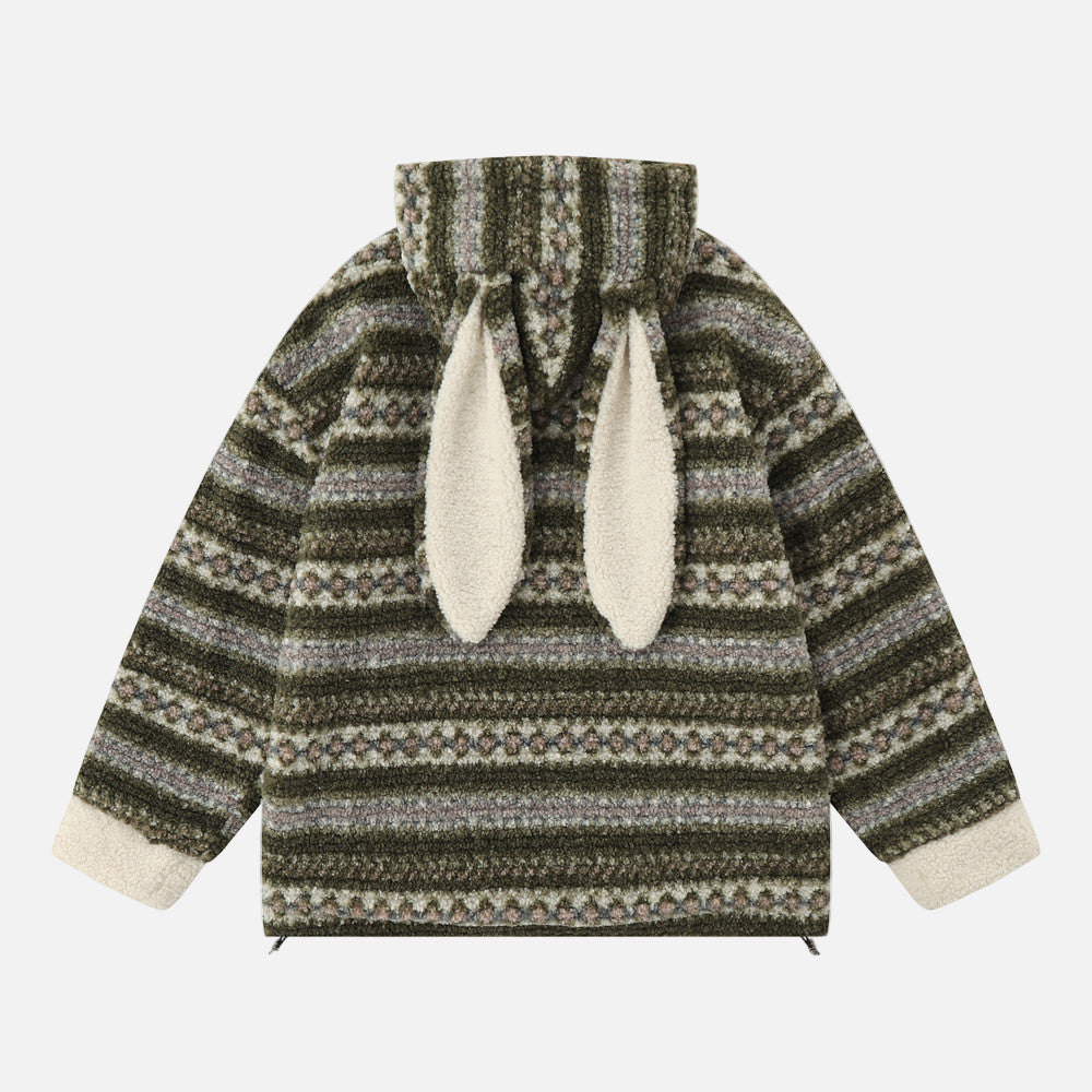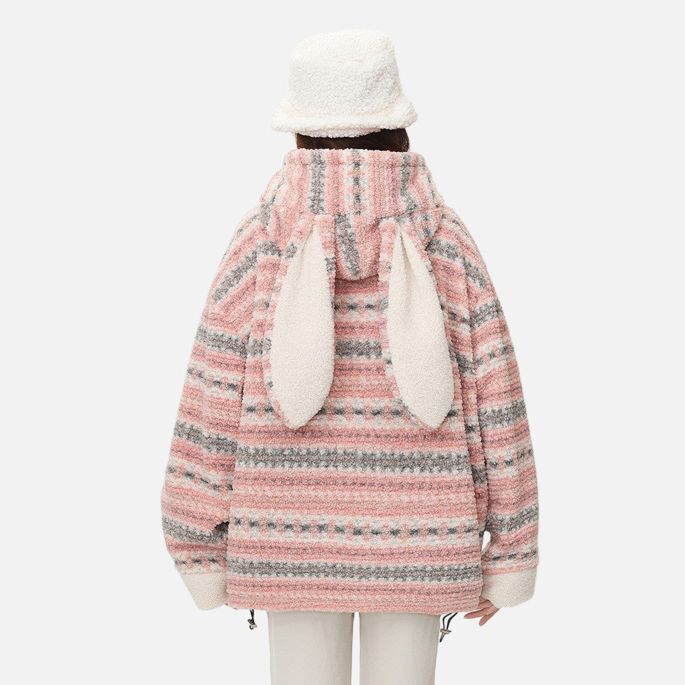 Soft Striped Winter Cartoon Rabbit Hooded Sweatshirt