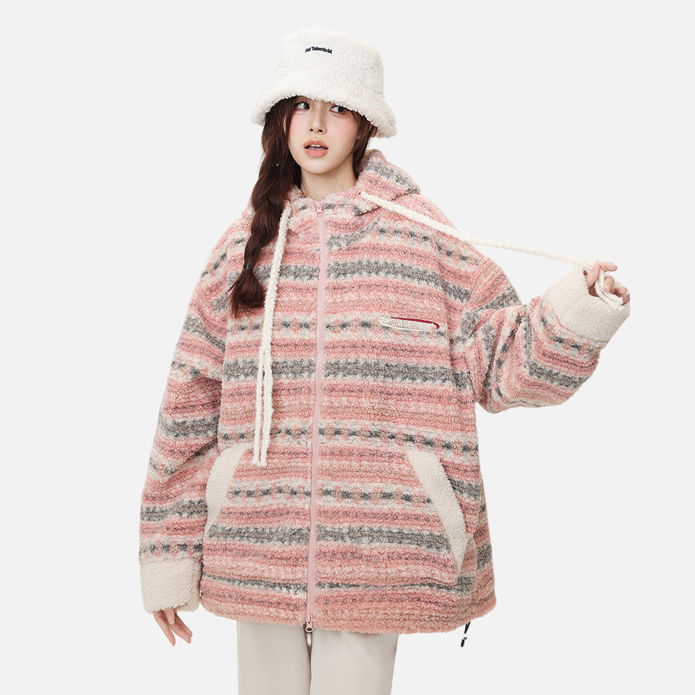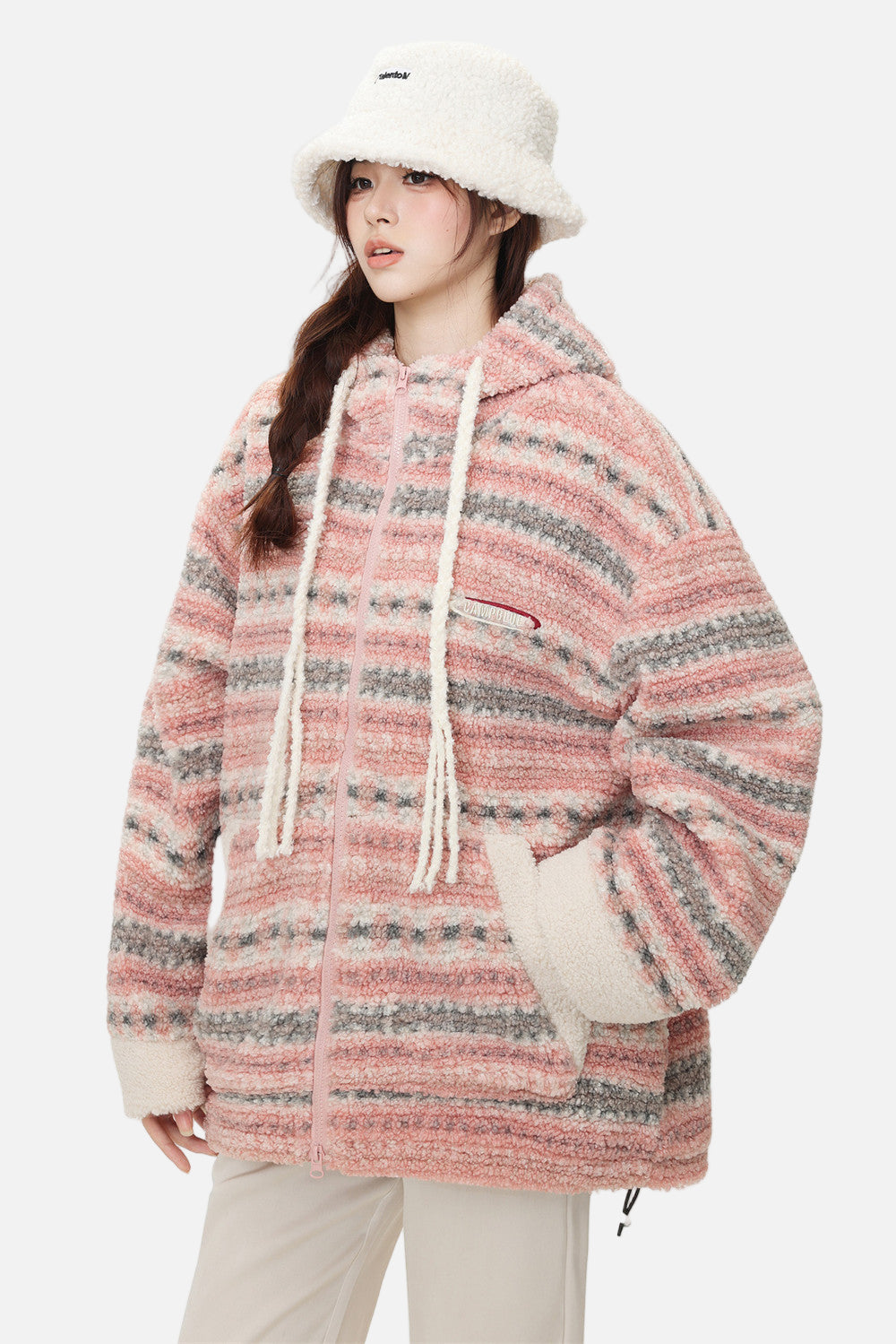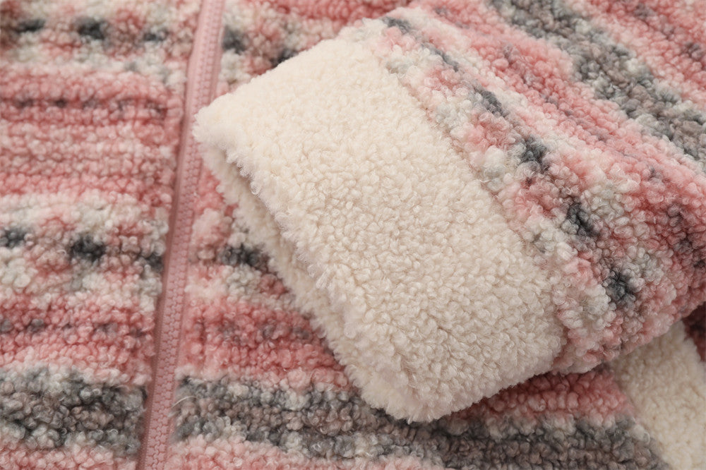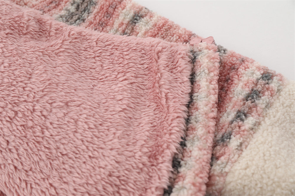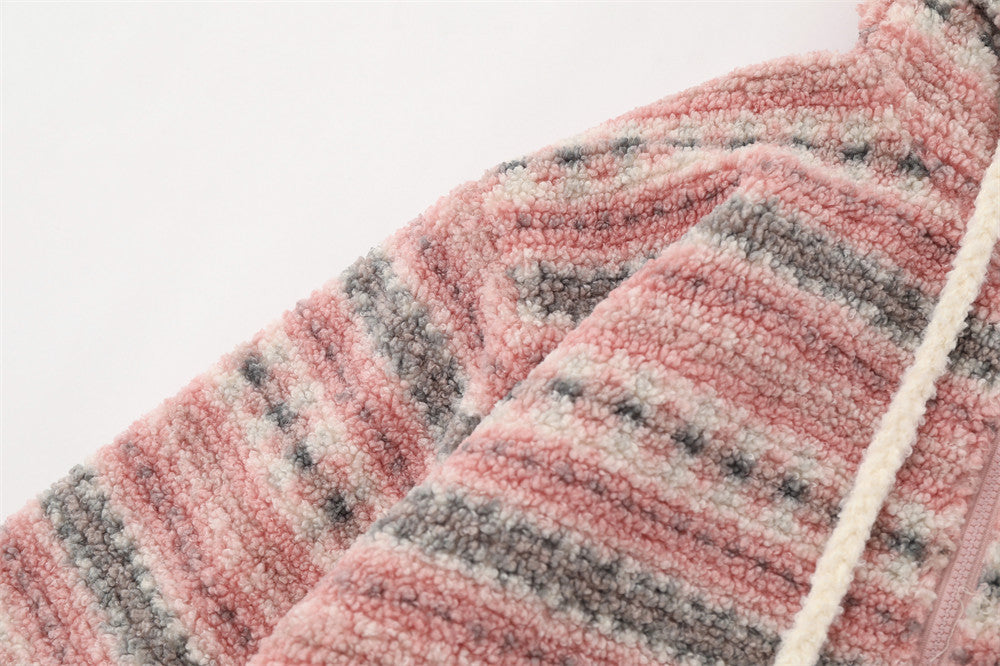 Soft Striped Winter Cartoon Rabbit Hooded Sweatshirt