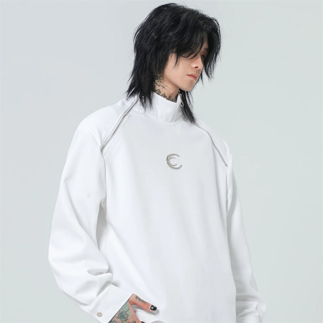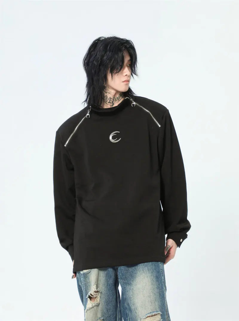 Streetwear Casual Reißverschluss Schulterpolster Sweatshirt