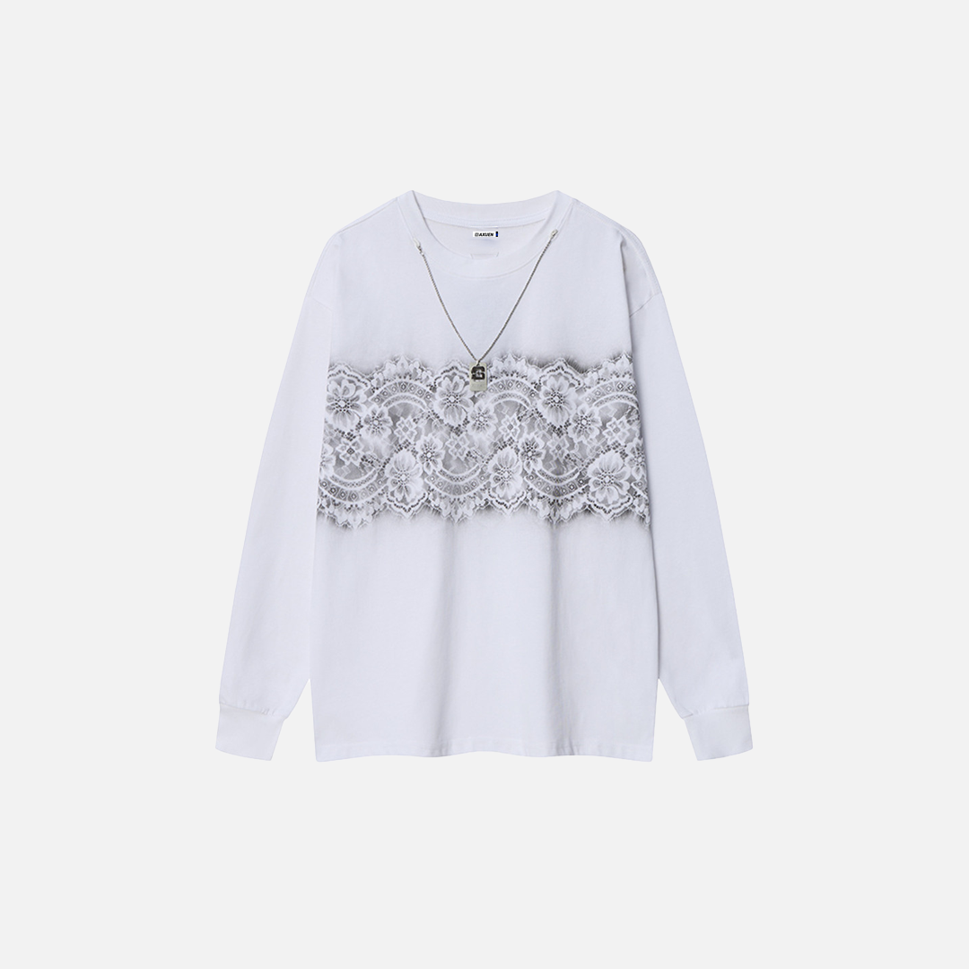 Streetwear Floral Print Chain Detail Long Sleeve Sweatshirt
