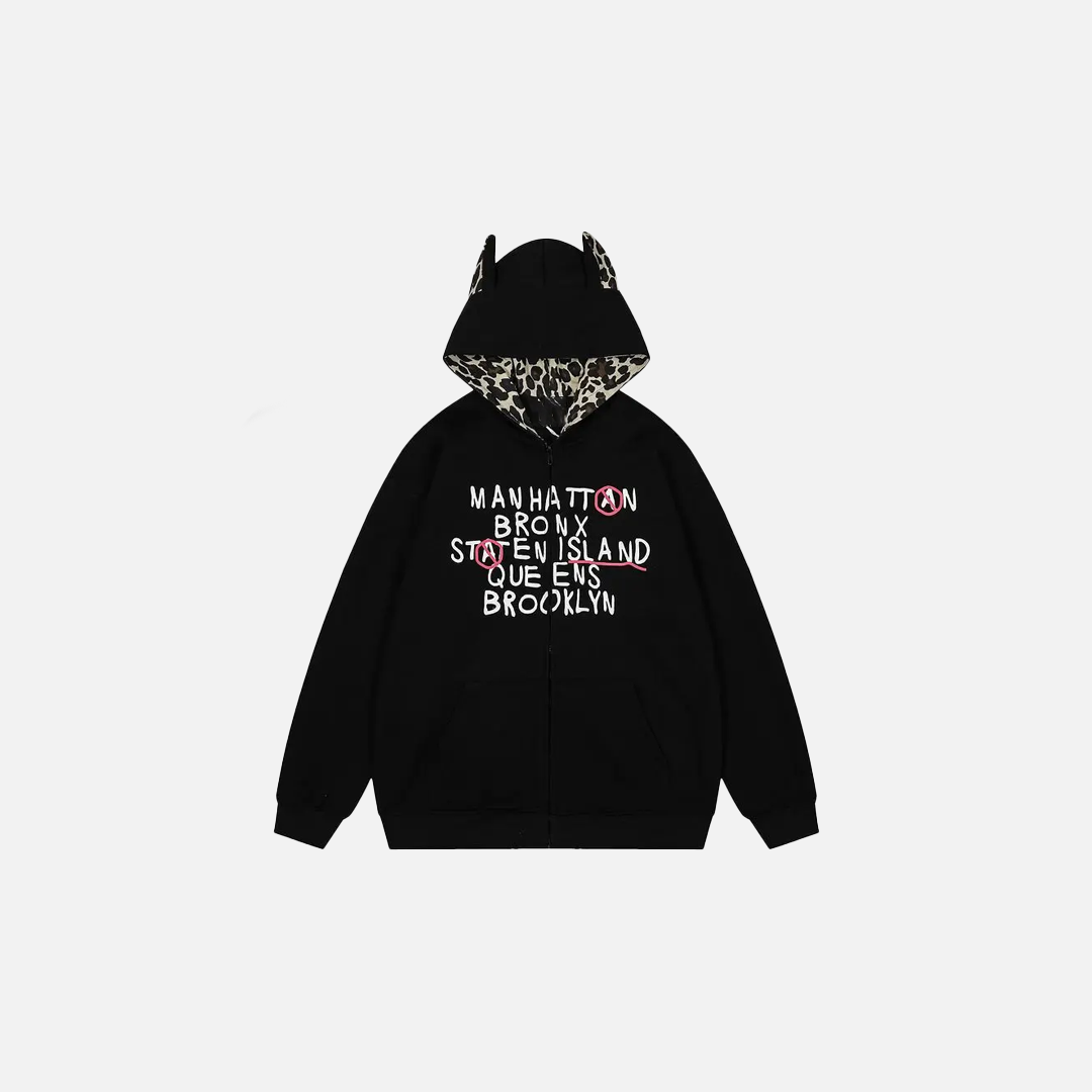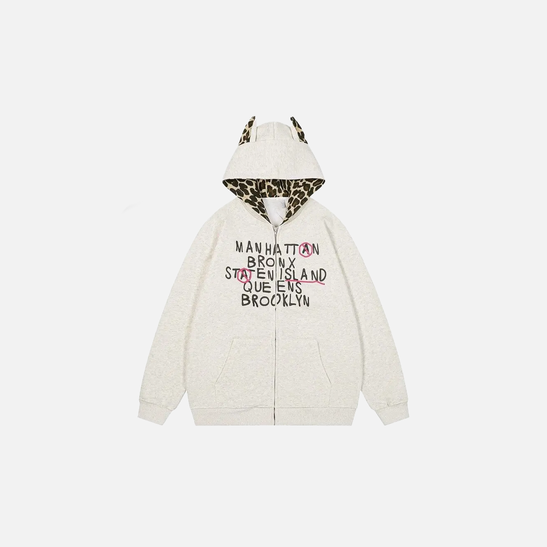Streetwear Leopard Print Patchwork Hooded Sweathirt