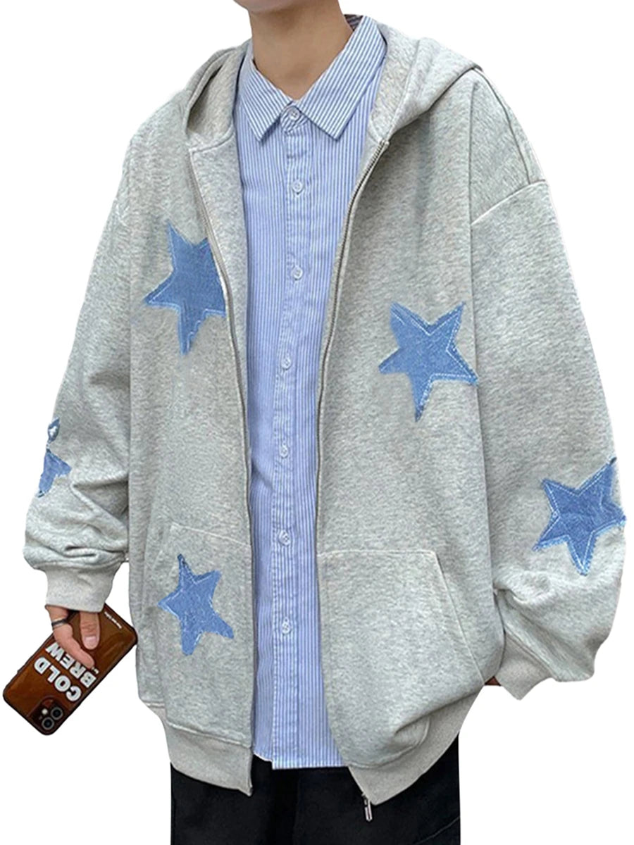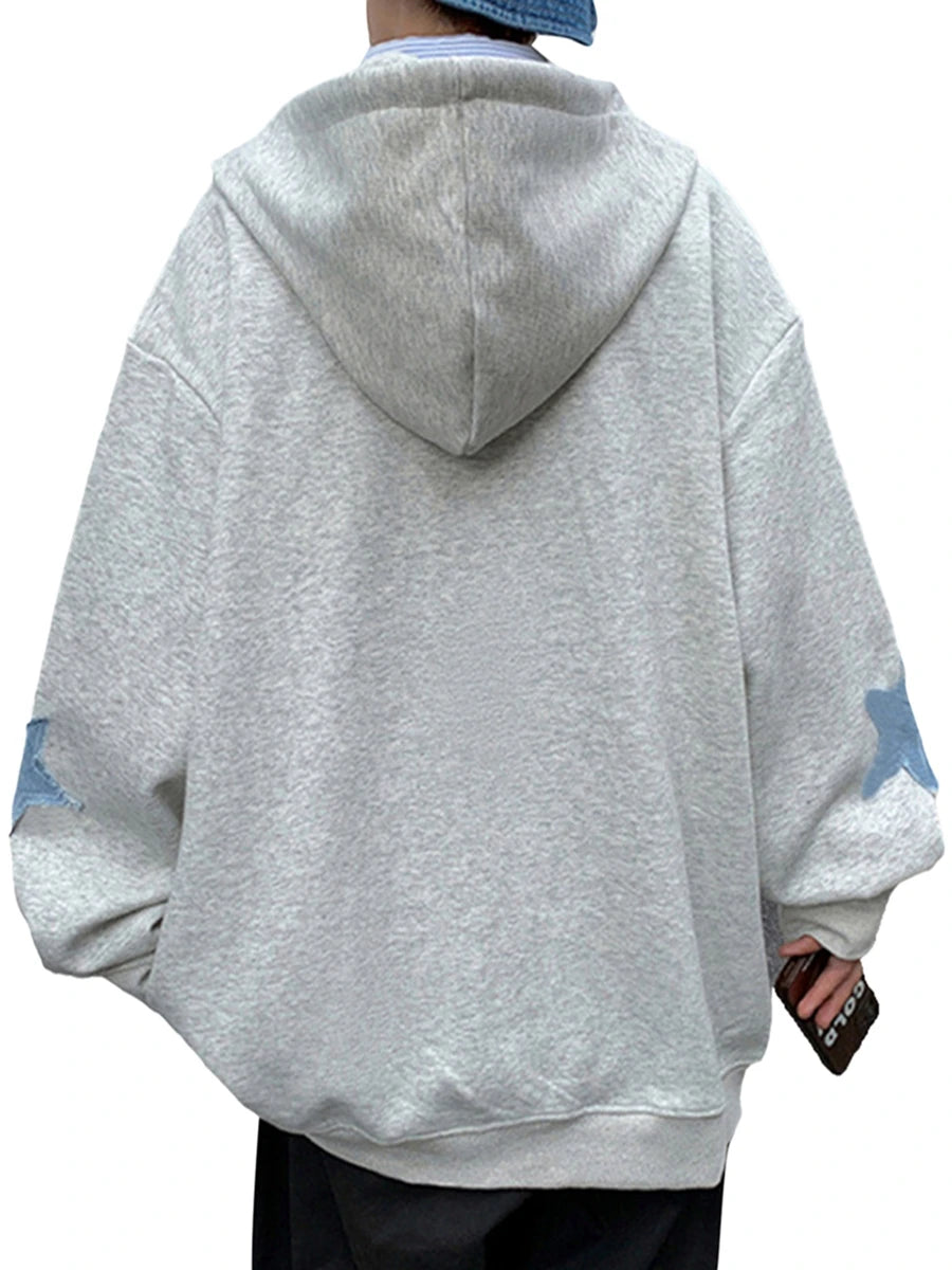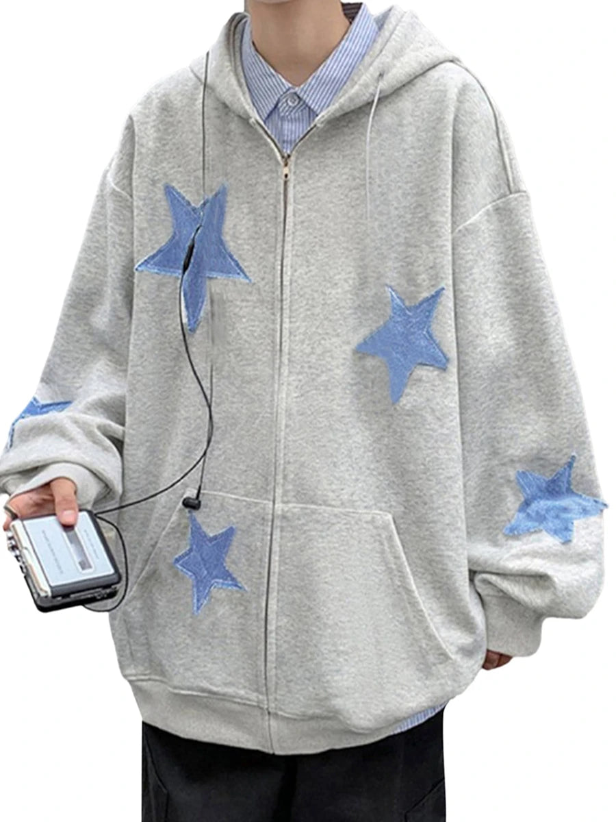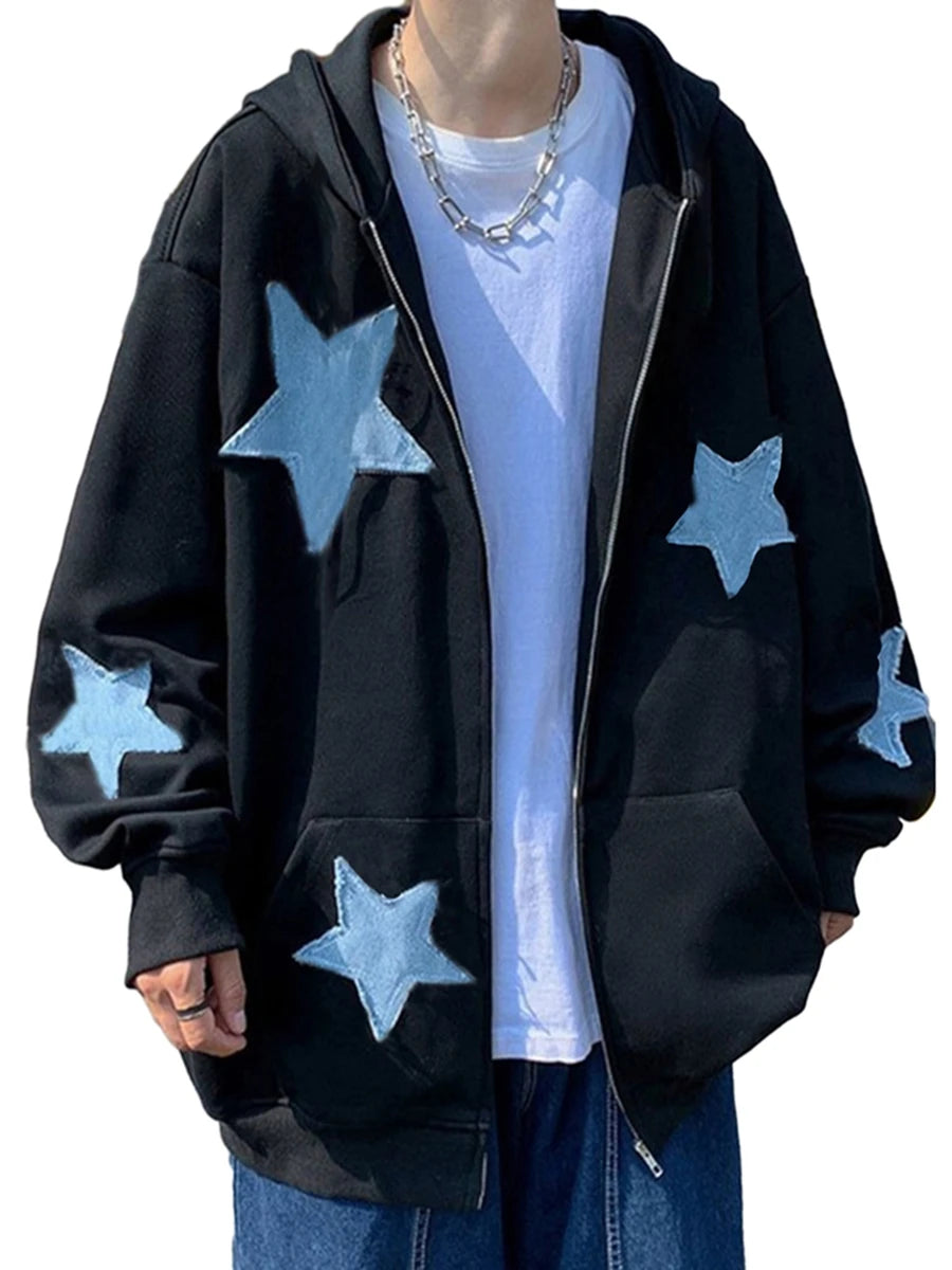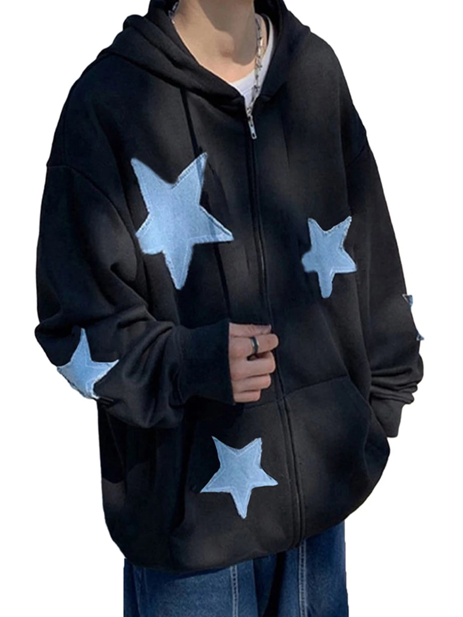 Streetwear Starry Zip Lässiges langes Kapuzenpullover