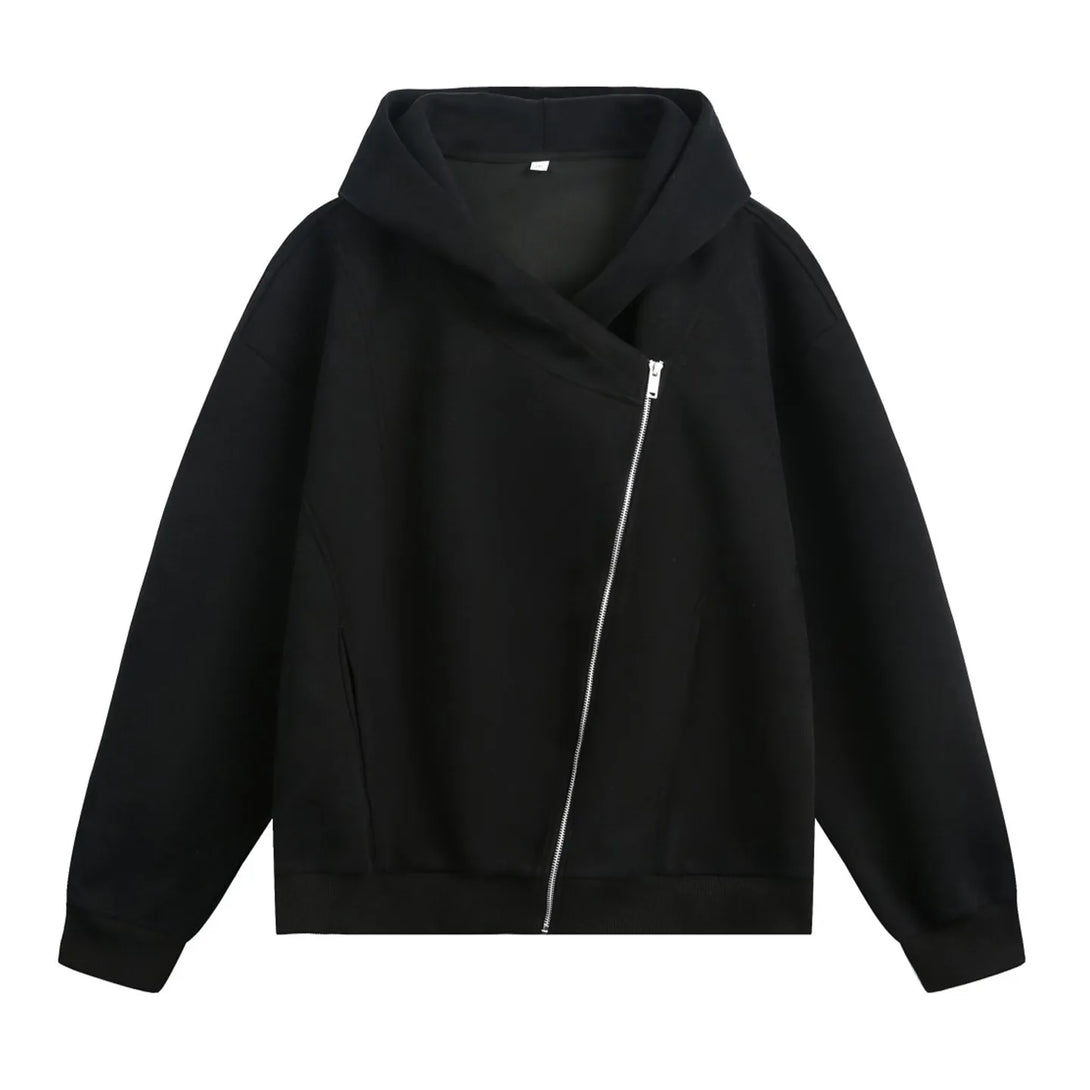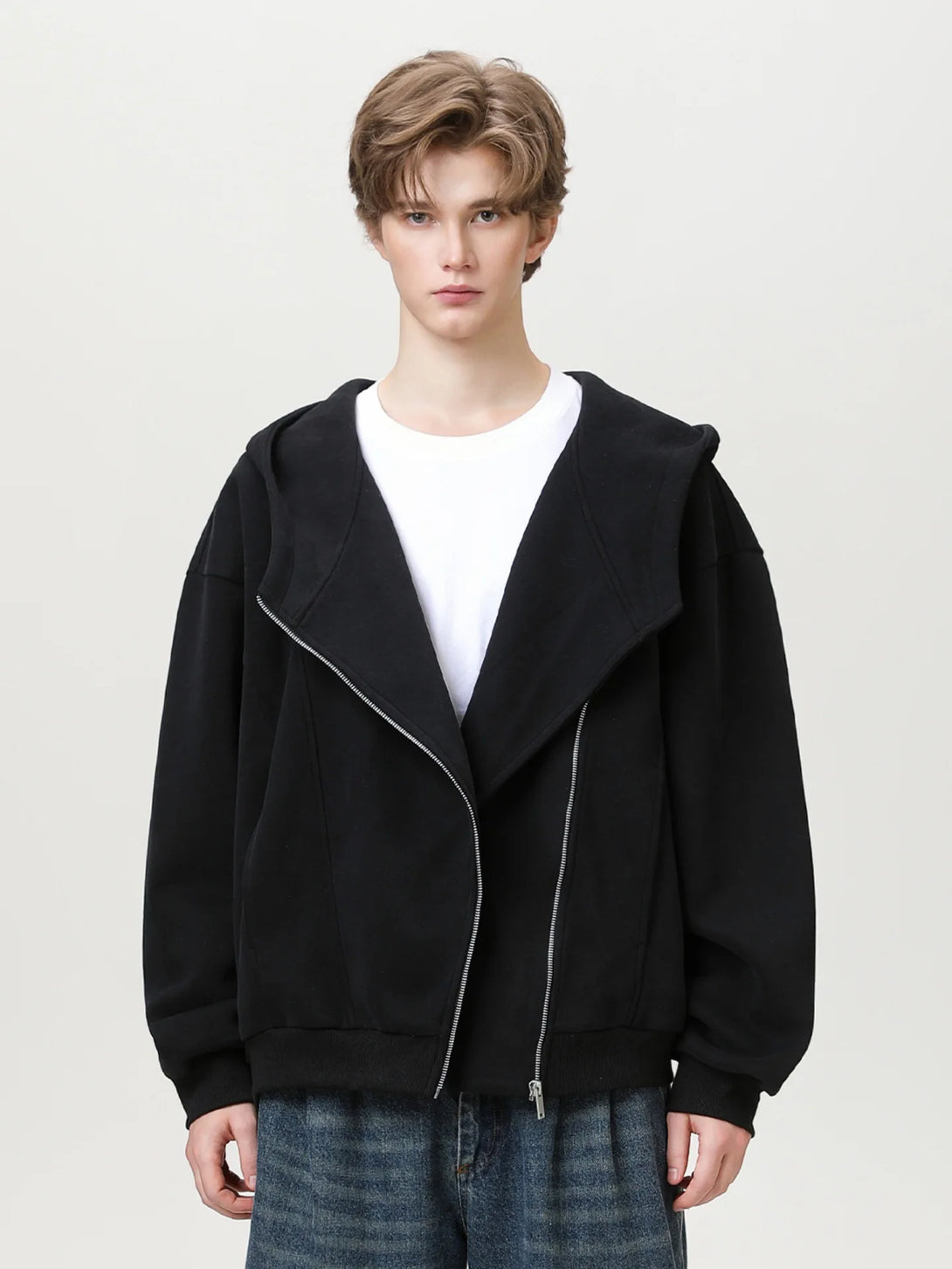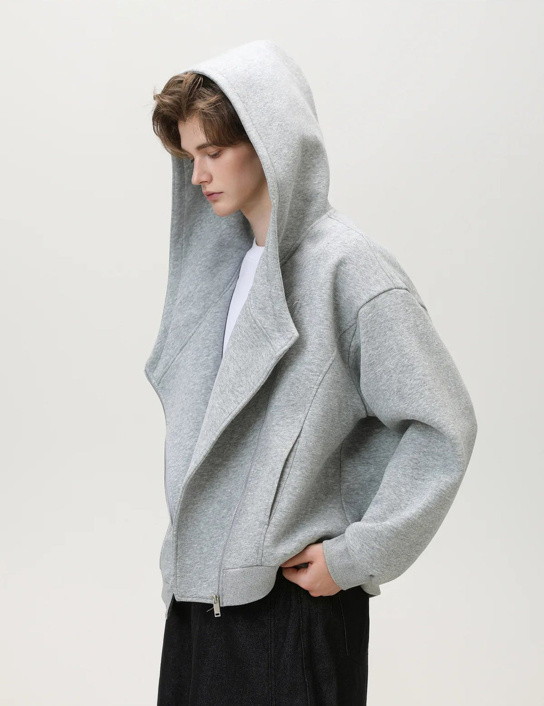 Strukturiertes Kapuzen-Sweatshirt mit schrägem Reißverschluss