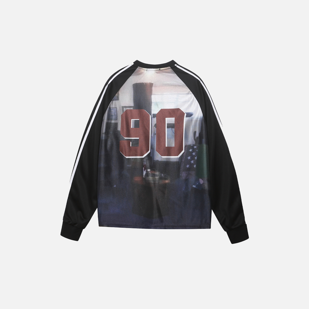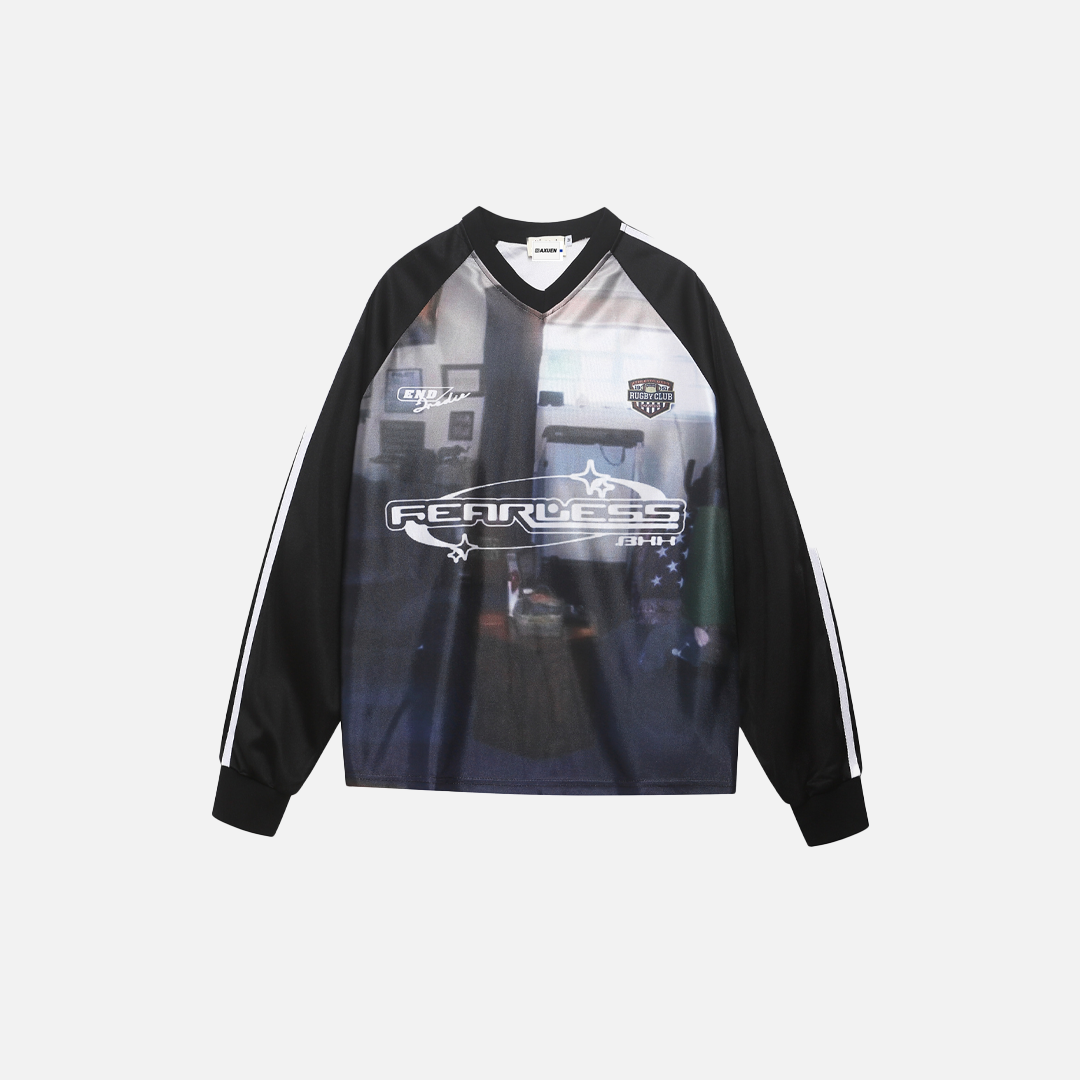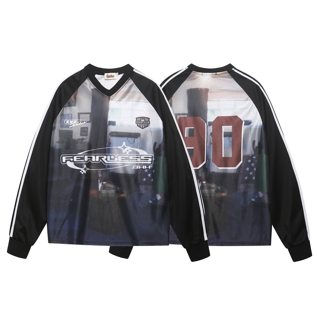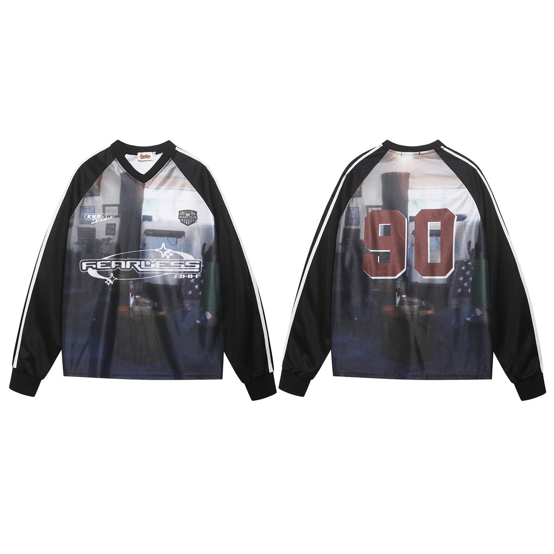 Sweatshirt mit V-Ausschnitt und Print im amerikanischen Vintage-Stil