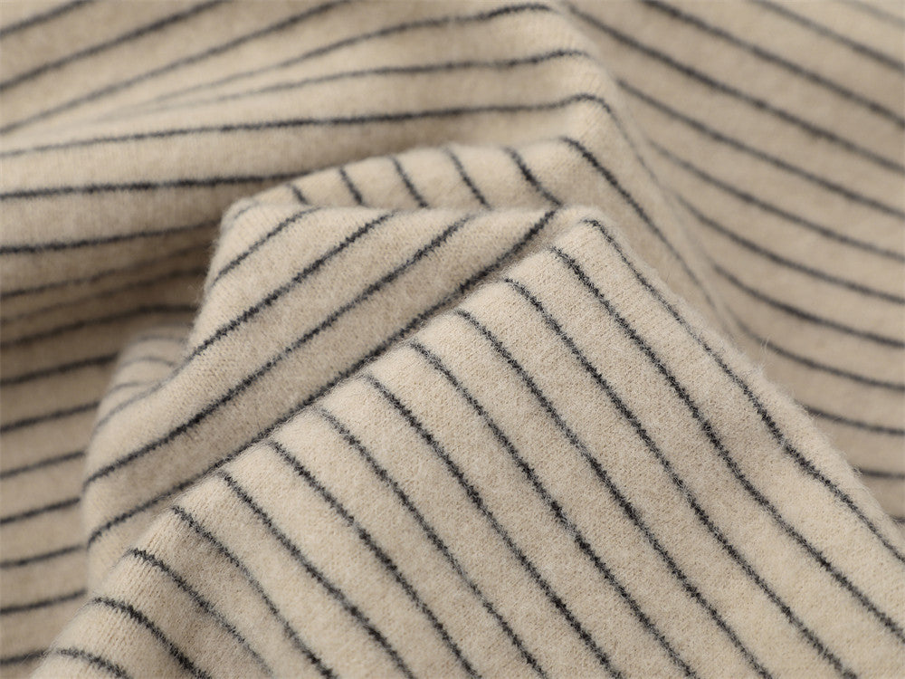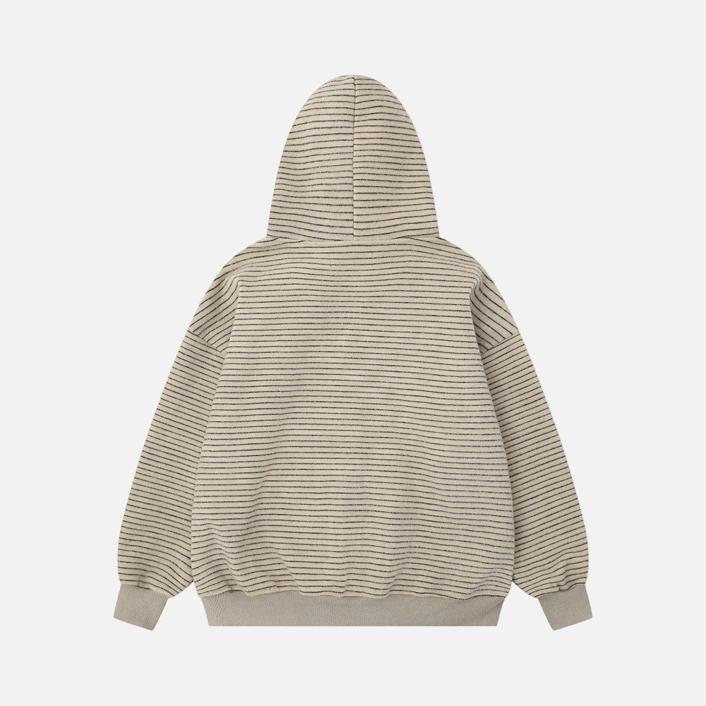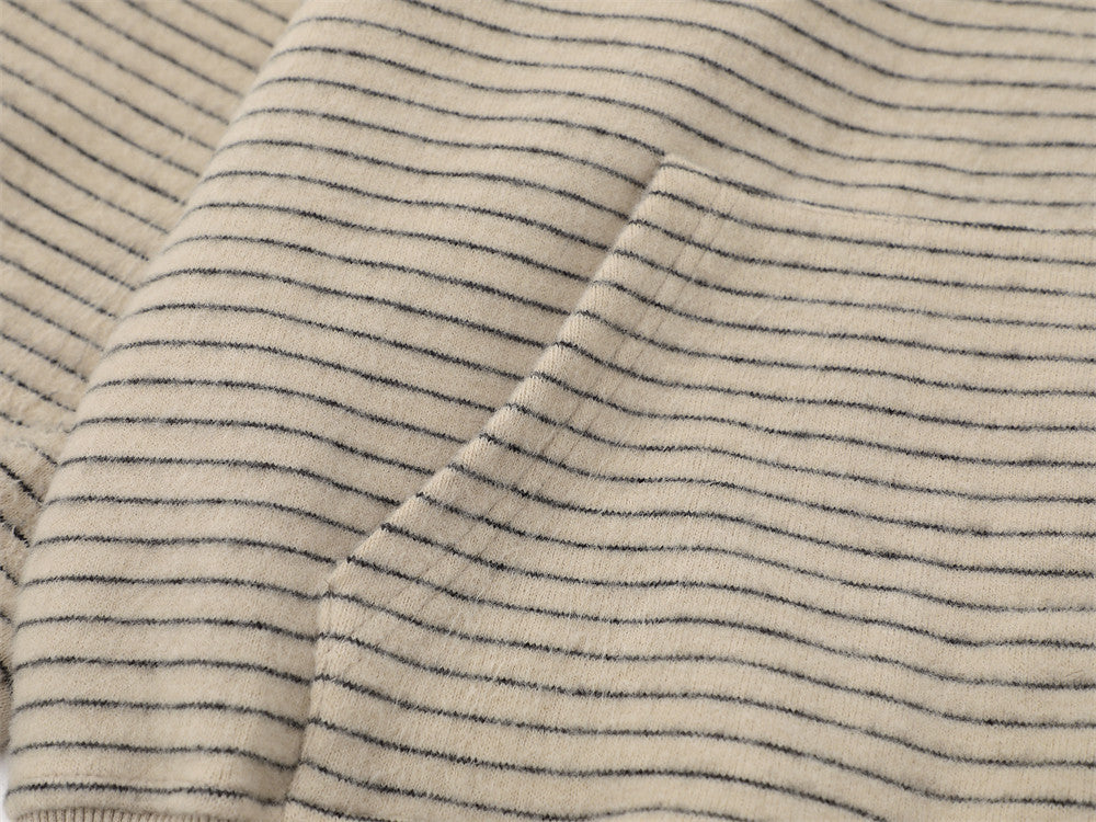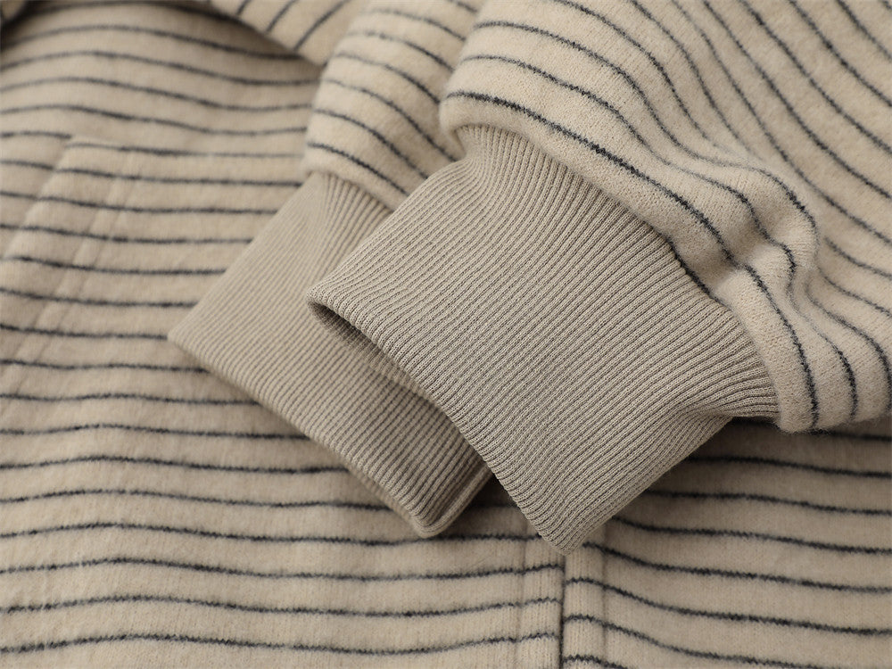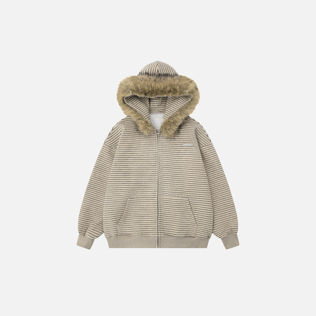 Vintage Striped Loose Fur Hooded Casual Sweatshirt