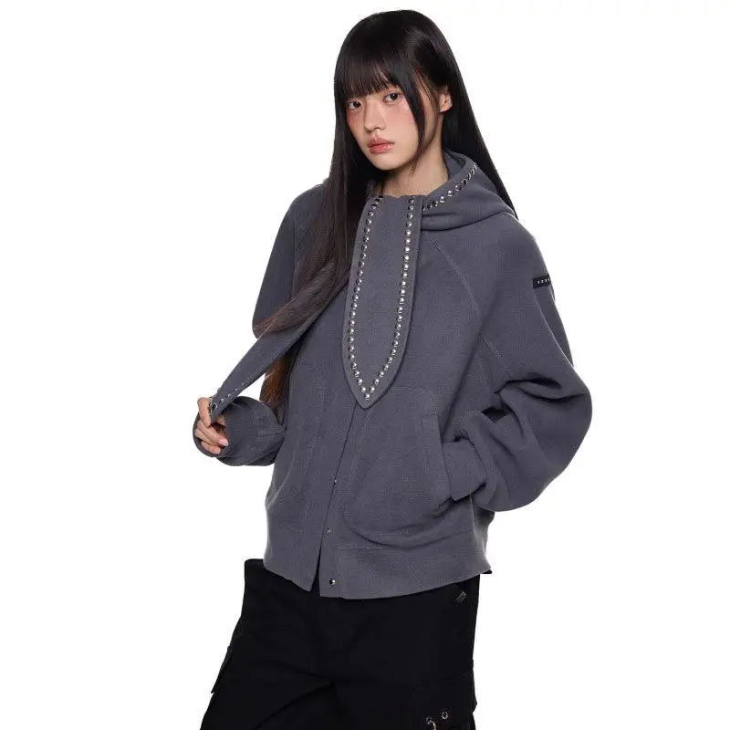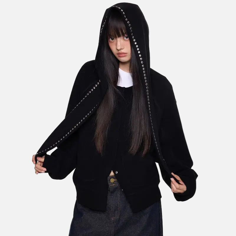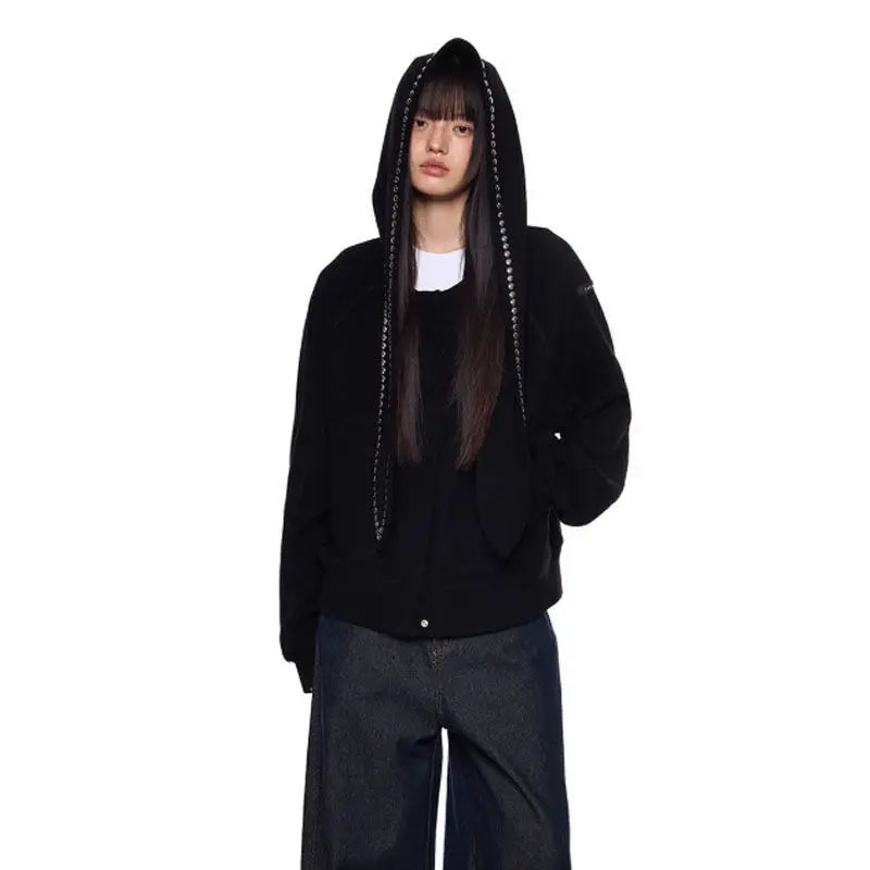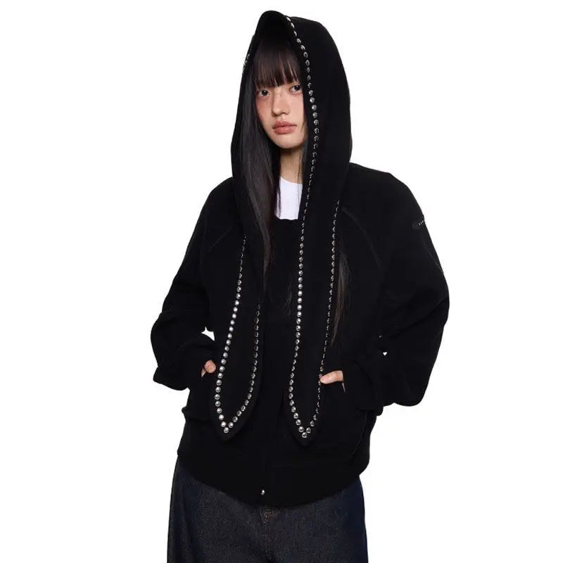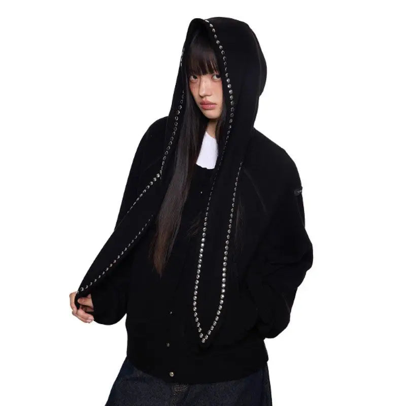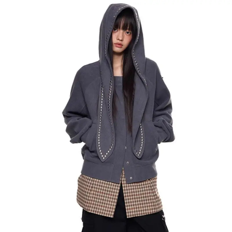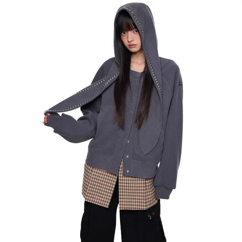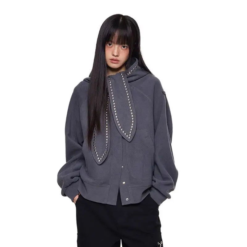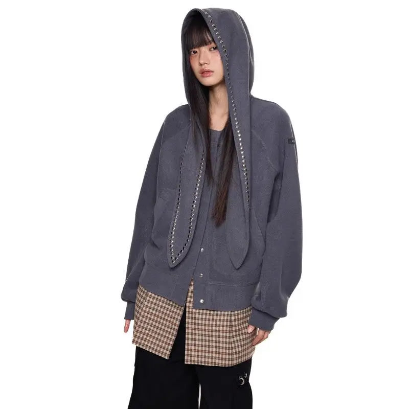 Winter Rivet Rabbit Ears Loose Casulal Sweatshirt