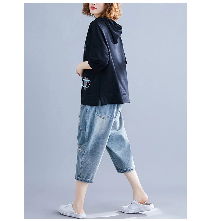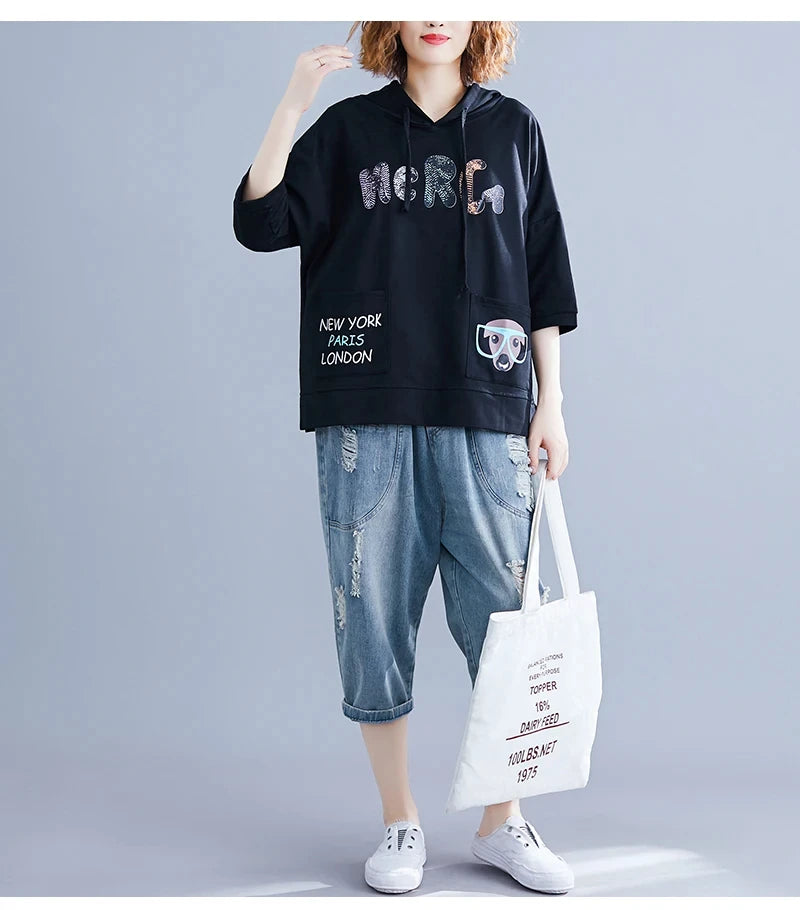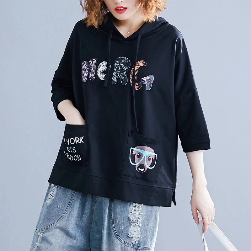 Damen-Sweatshirt mit süßem Buchstaben-Print, lässig