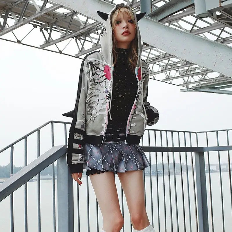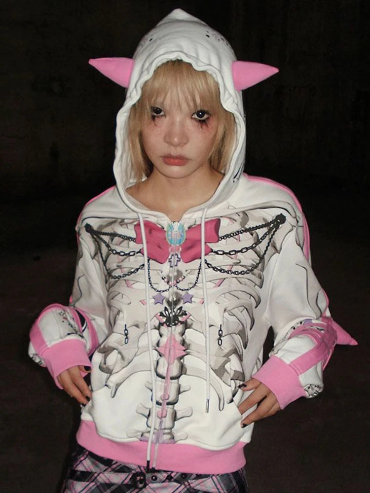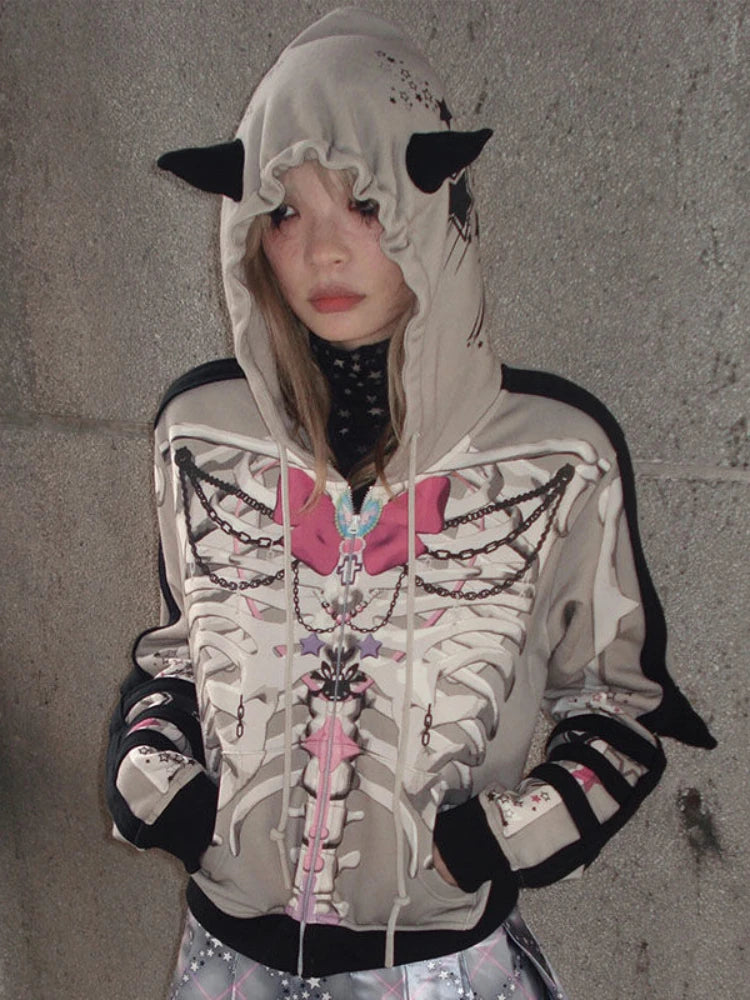 Dickes Sweatshirt für Damen mit Gothic-Punk-Totenkopf-Schleifen-Print