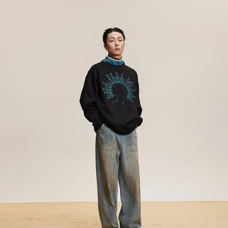 Y2K Autumn Streetwear Rivet Print Sweatshirt
