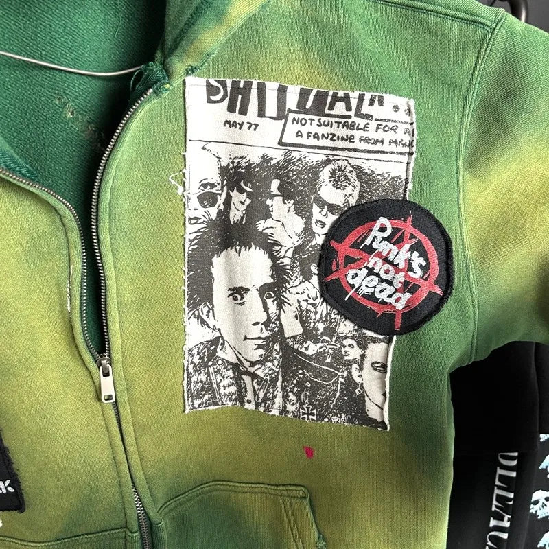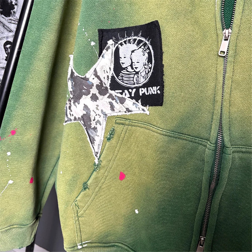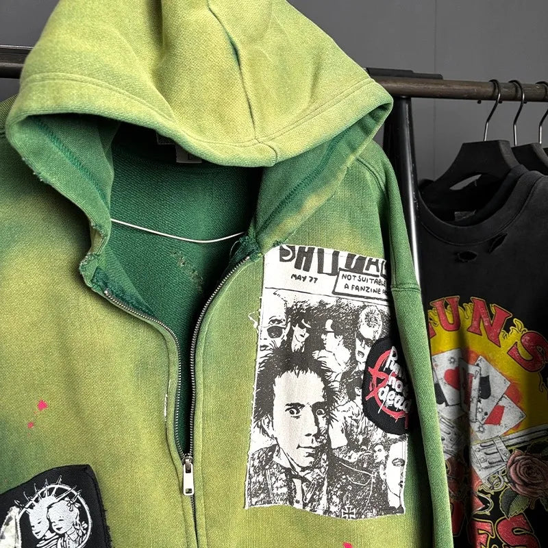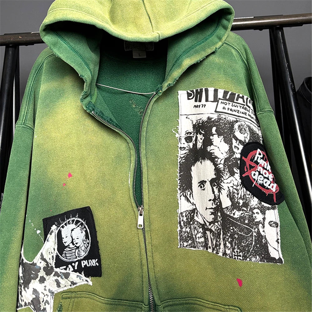 Y2K Green Retro Oversized Tie Dye Zip Sweatshirt
