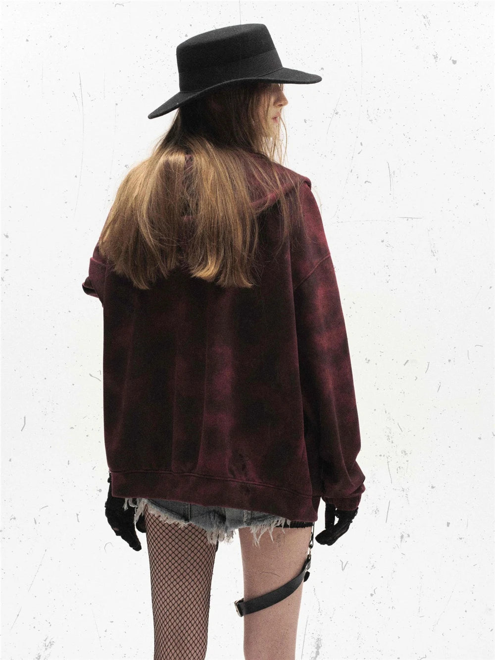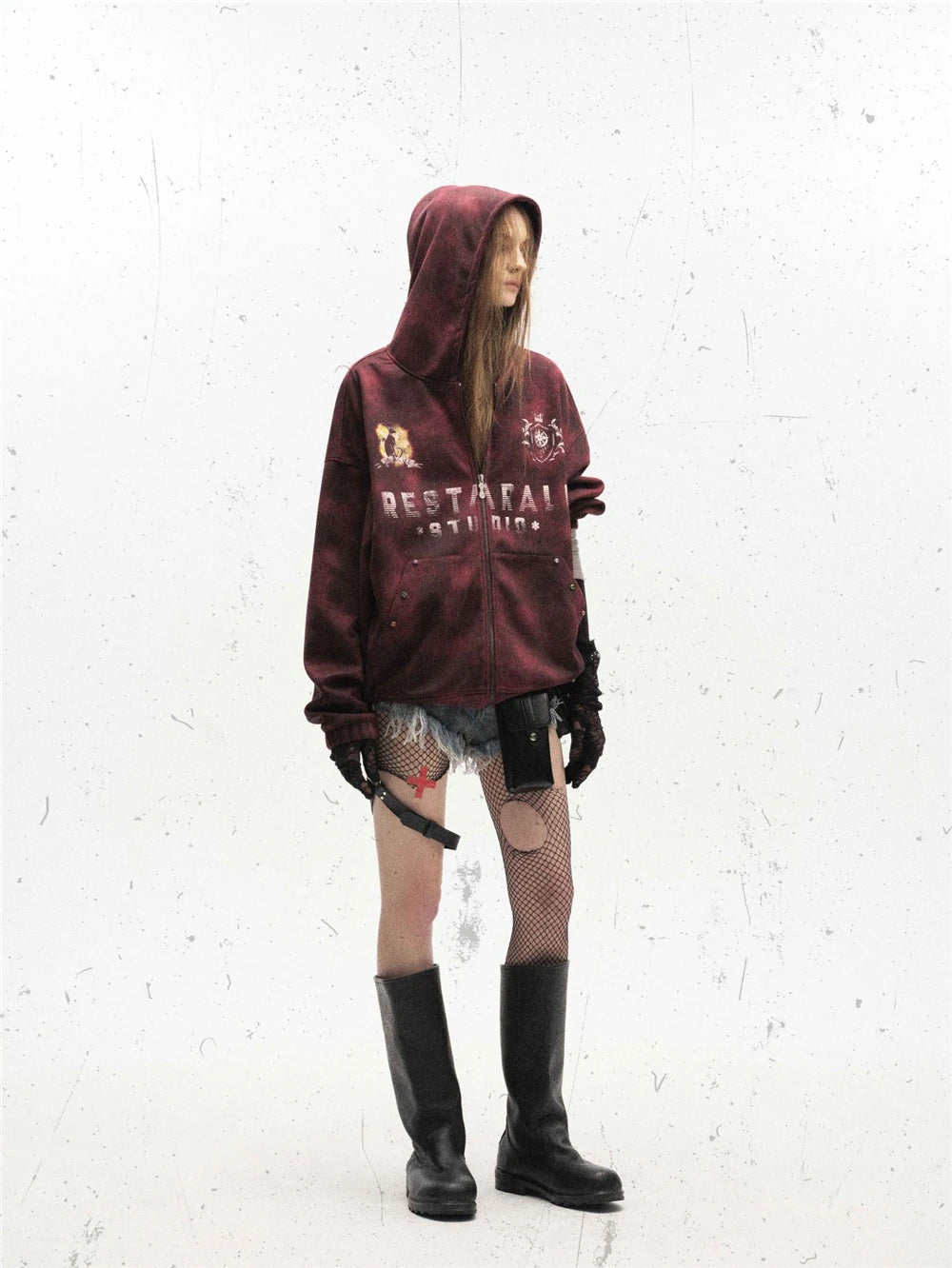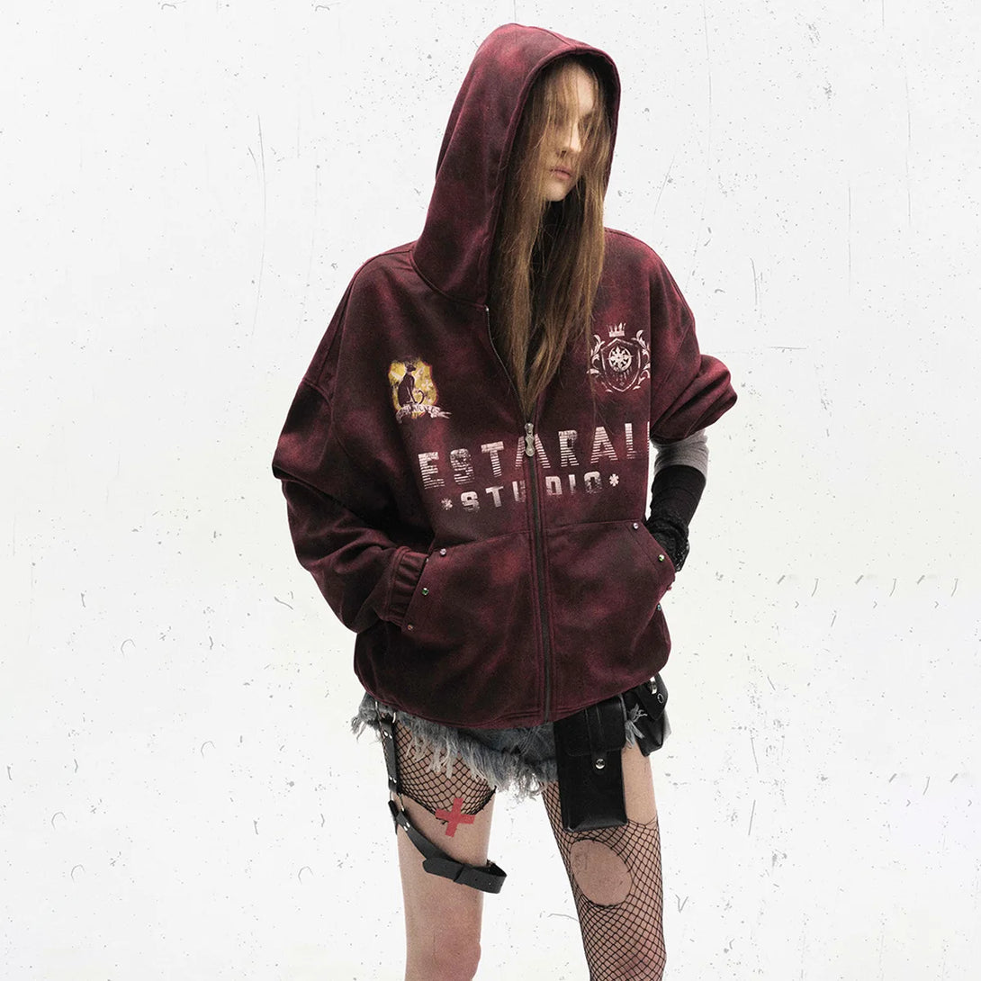 Y2K Spring Breathable Red Zip Up Hooded Sweatshirt