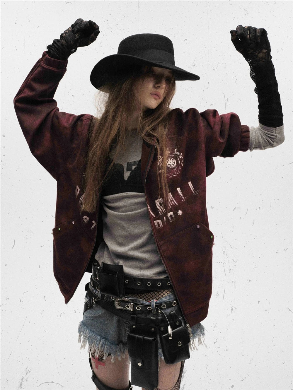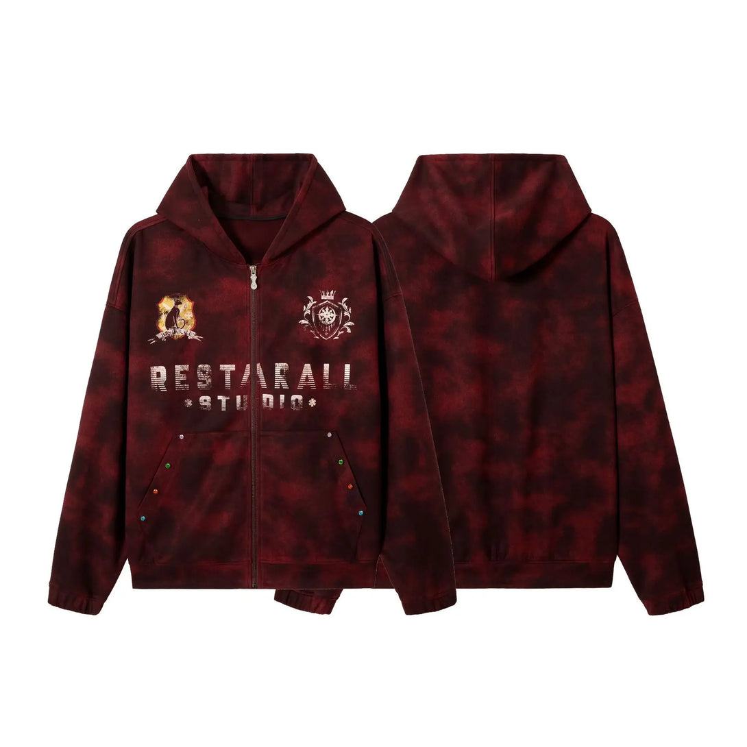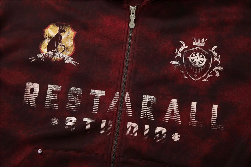 Y2K Spring Breathable Red Zip Up Hooded Sweatshirt
