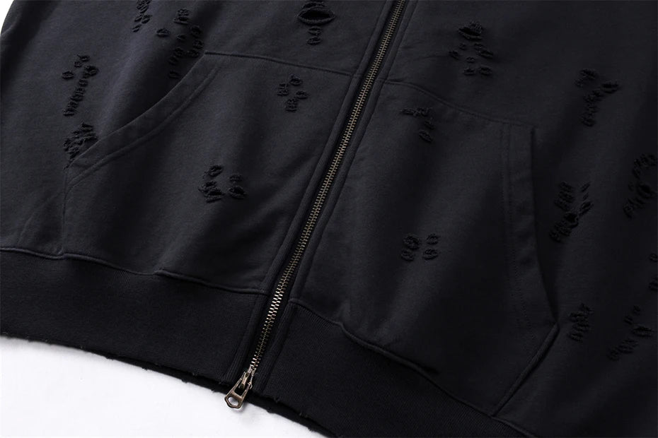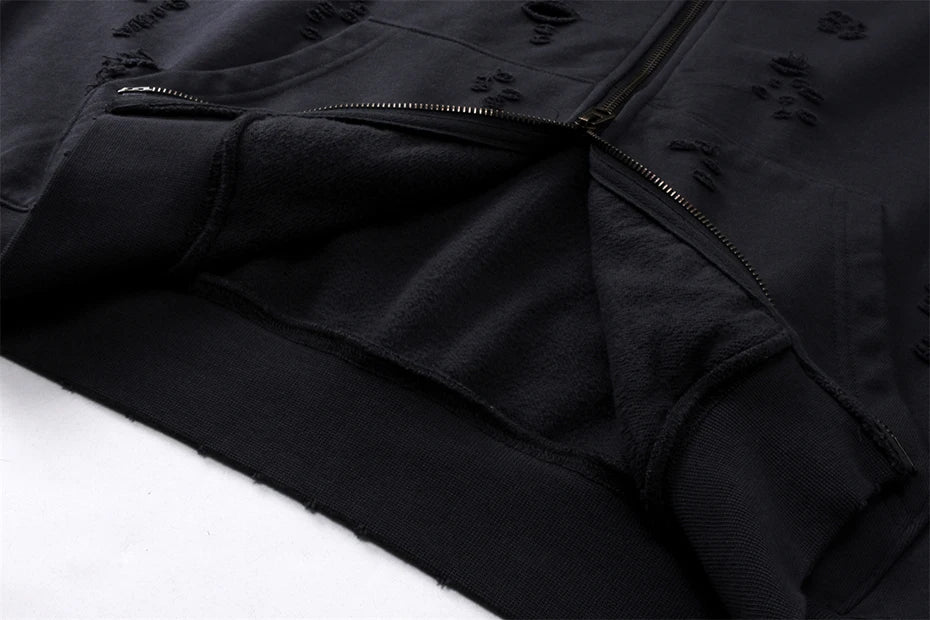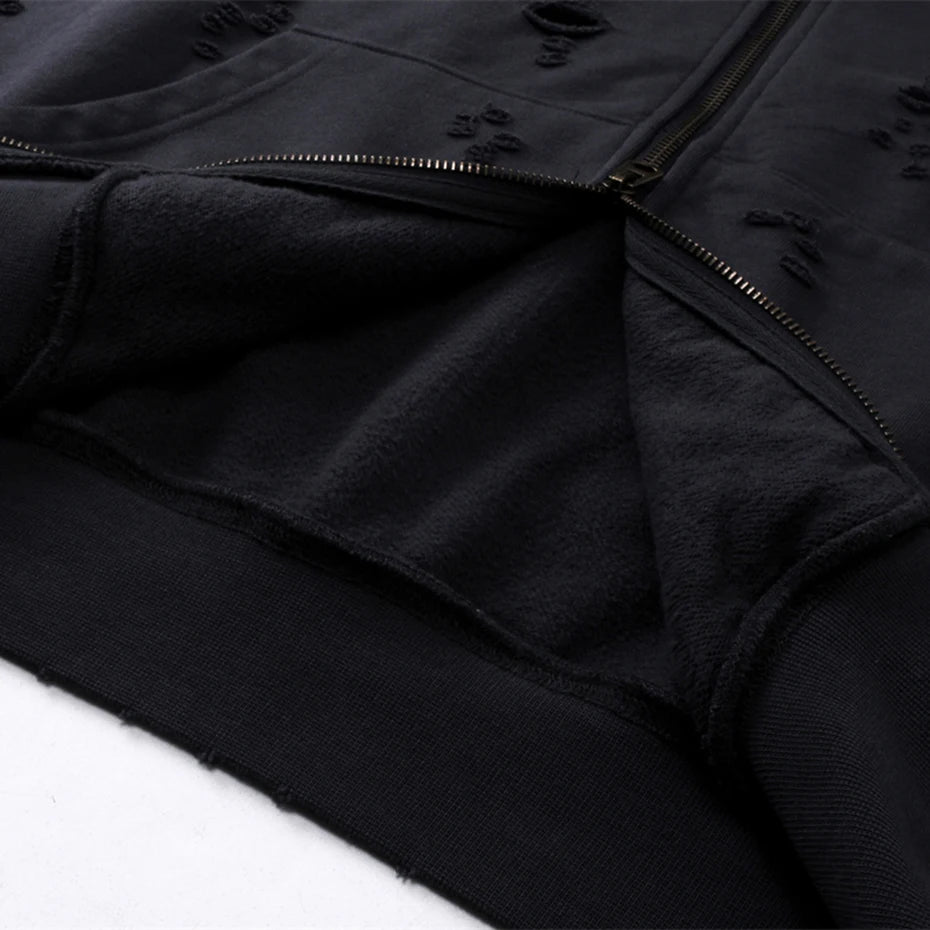 Y2K Torn Tracks Kapuzenpullover mit Reißverschluss