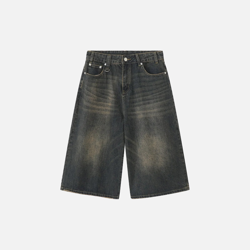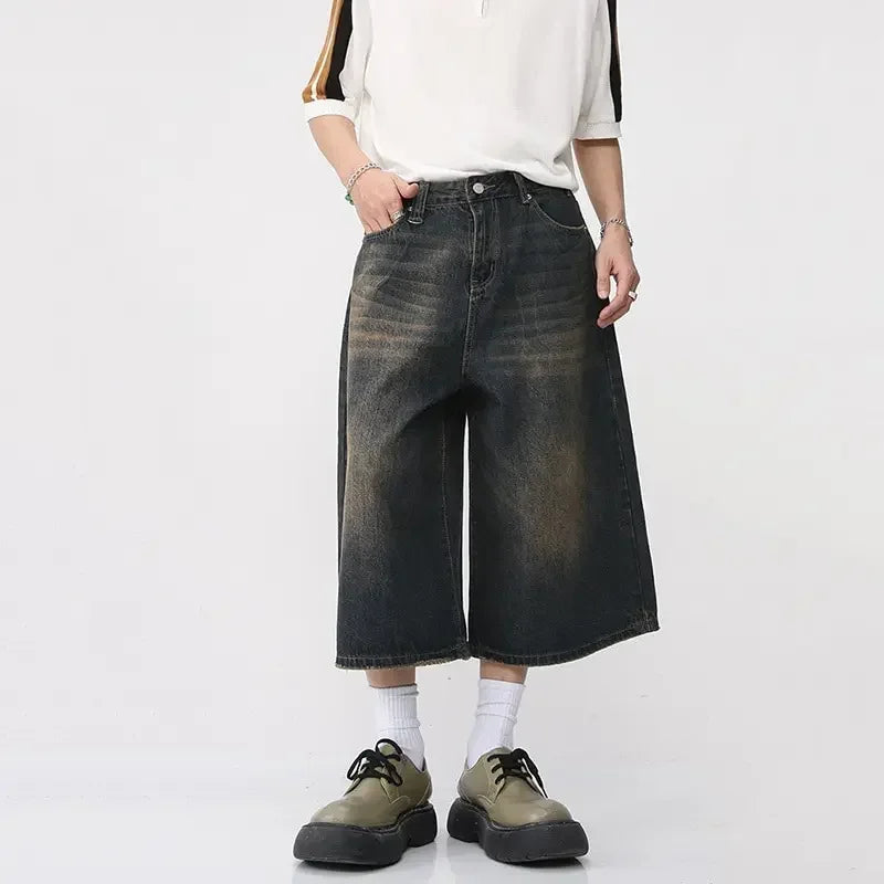 Diese aus hochwertiger Baumwolle gefertigten schwarzen Y2k Vintage Wide-leg Jorts verfügen über ein solides Muster und ein mittelhohes Design mit einem elastischen Taillenverschluss für maximalen Komfort und Stil.