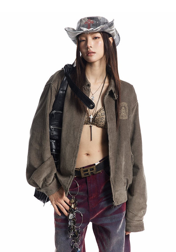 Jeansjacke mit Umlegekragen und Reißverschluss