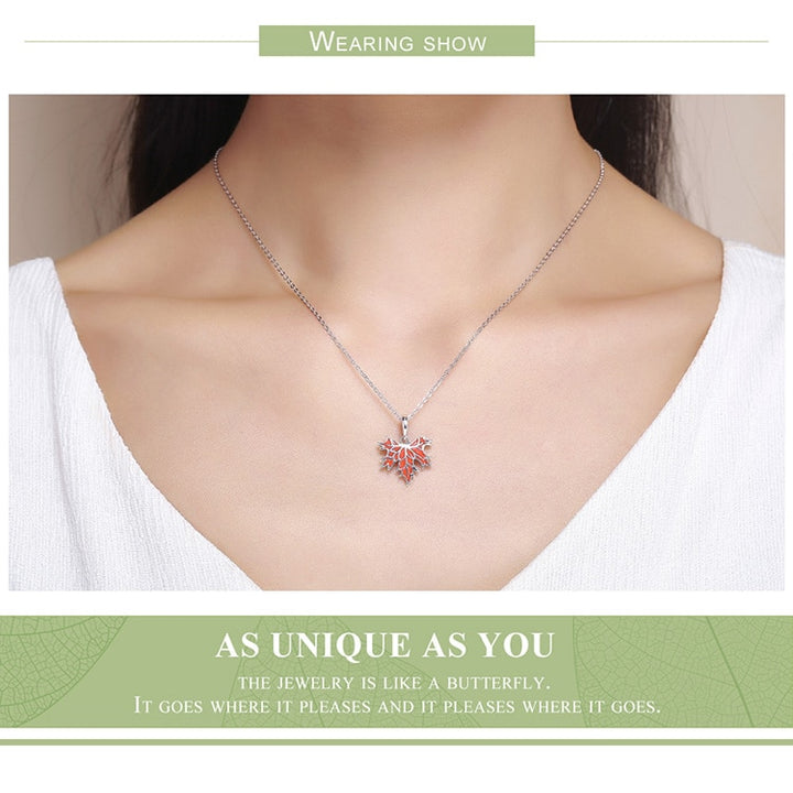 Herbst-Ahorn-Baum-Blätter 925 Sterlingsilber-Anhänger-Halskette