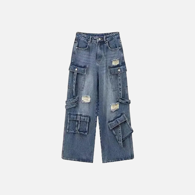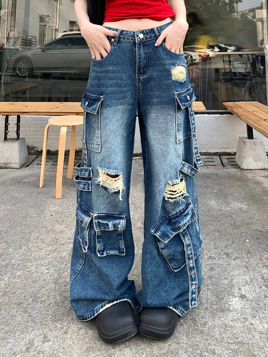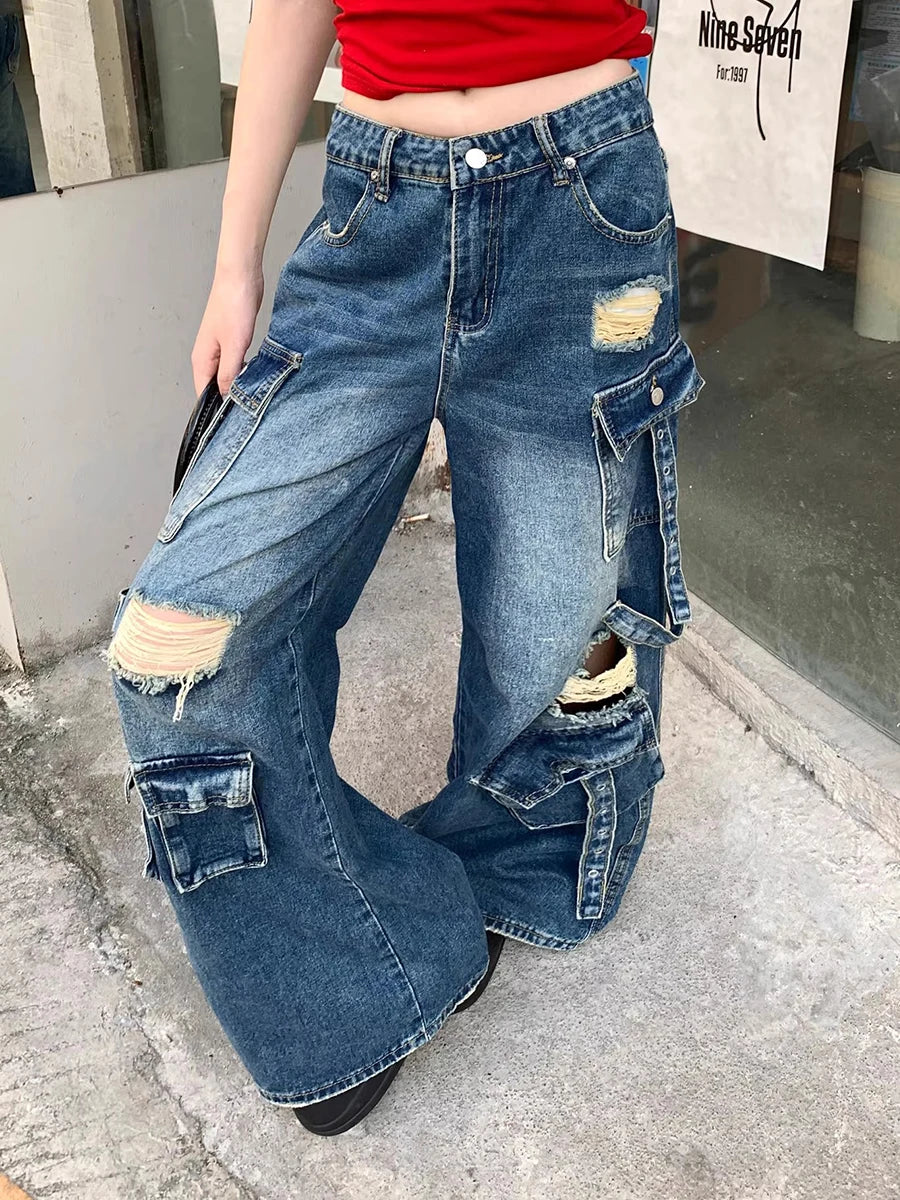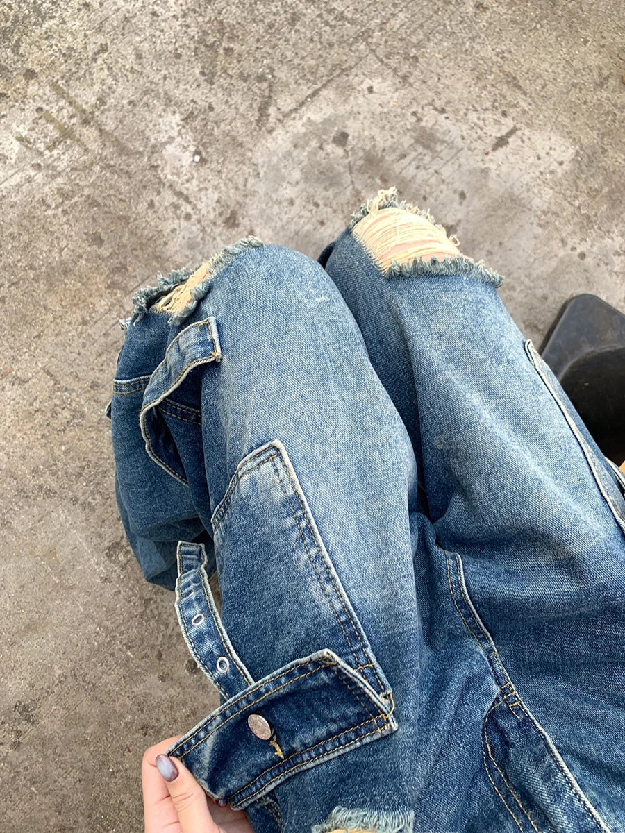 Destroyed Low Rise Loose Fit Cargo Jeans