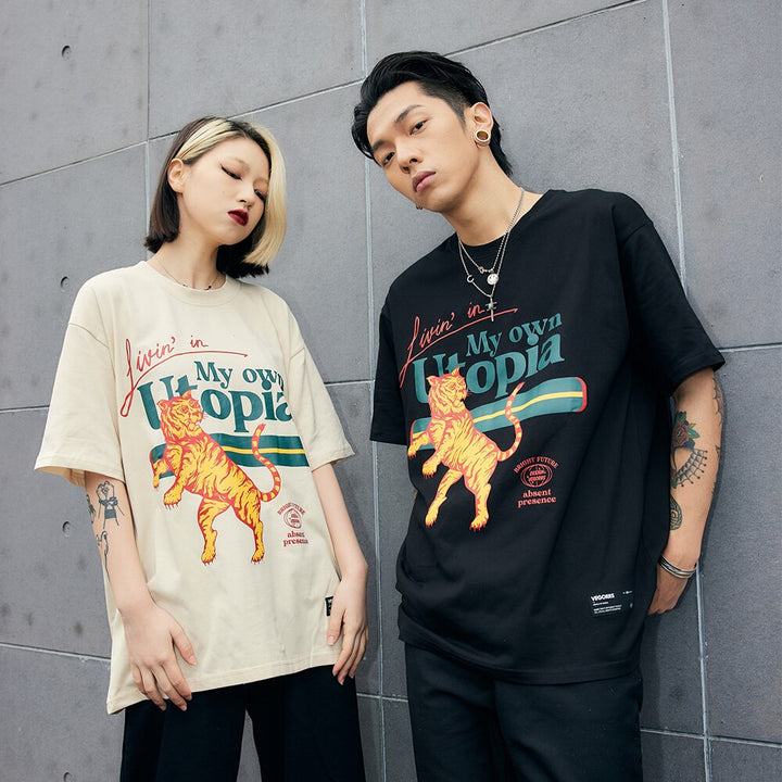 Living In My Own Utopia T-Shirt mit Tiger-Print