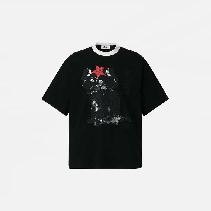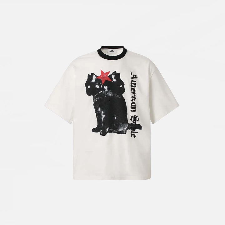Oversize-Kurzarm-T-Shirt mit Katzen-Print