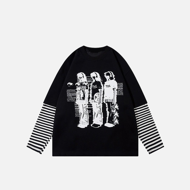 Gestreiftes Patchwork-Sweatshirt mit Ärmeln