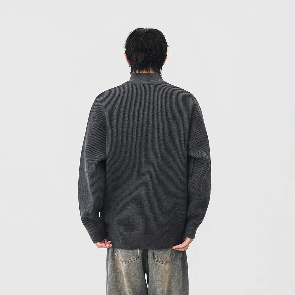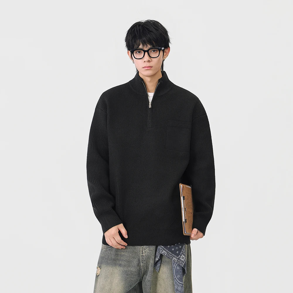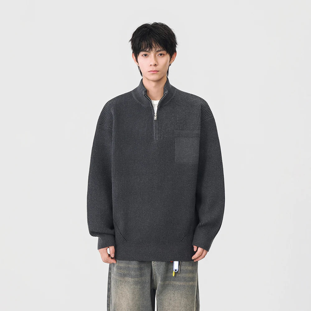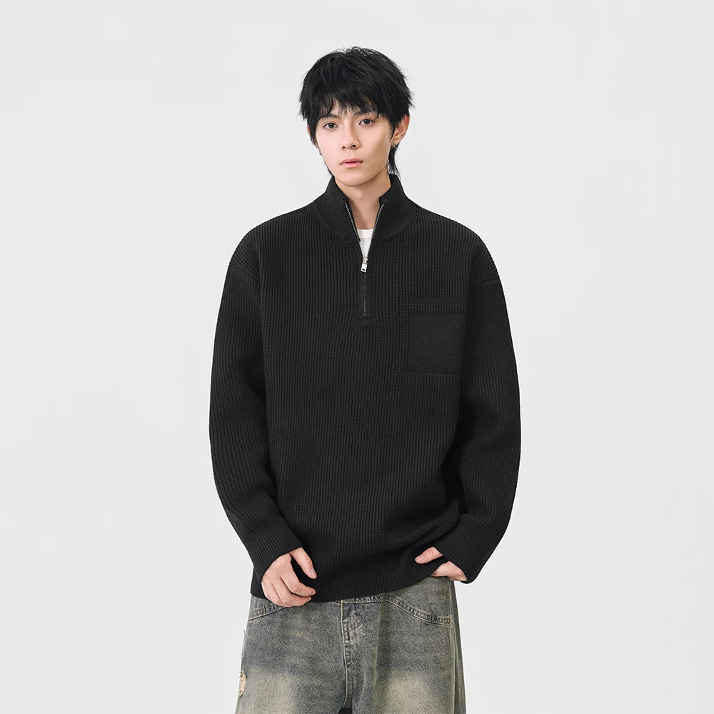 Soft Ribbed Knit Mock Neck Half Zipper Sweater