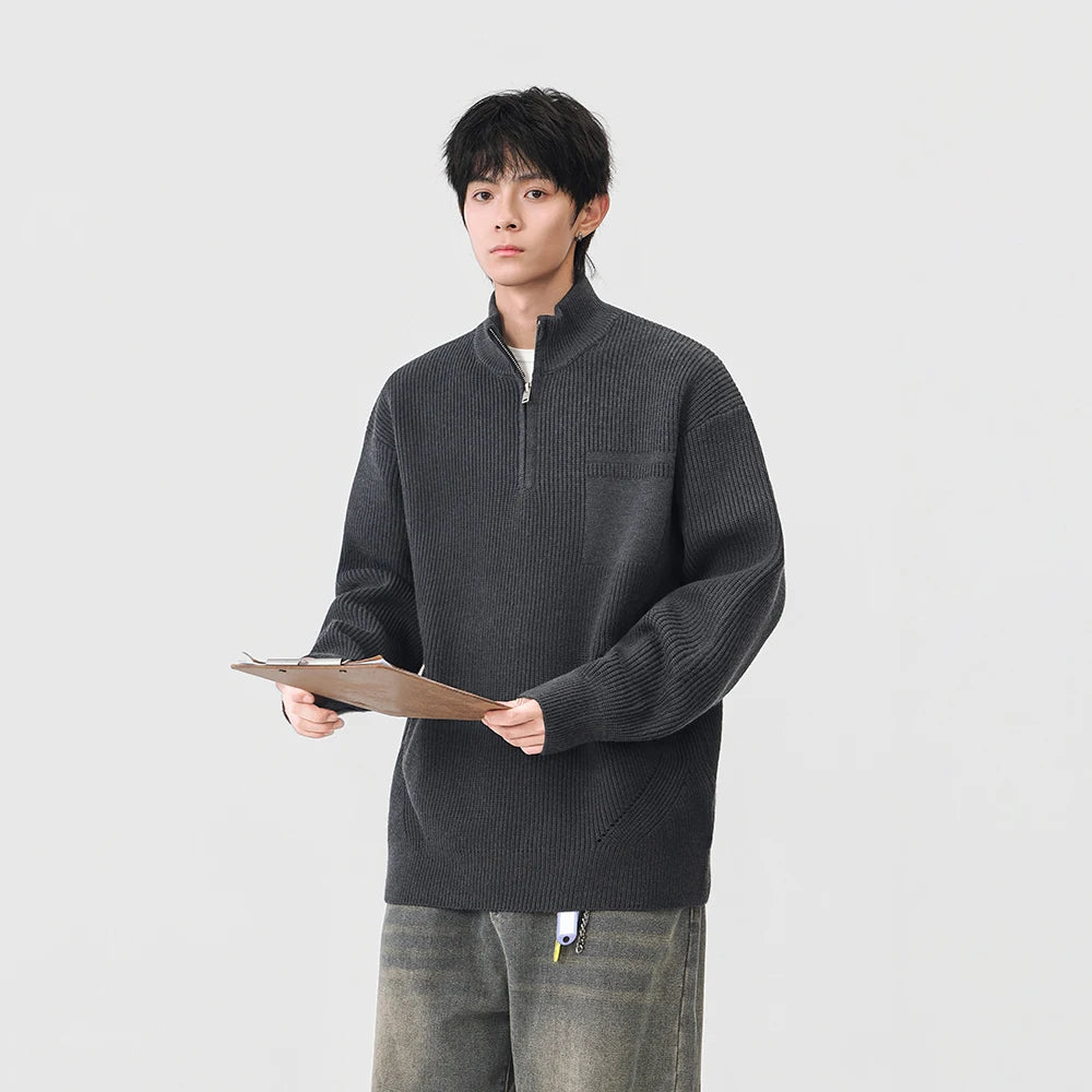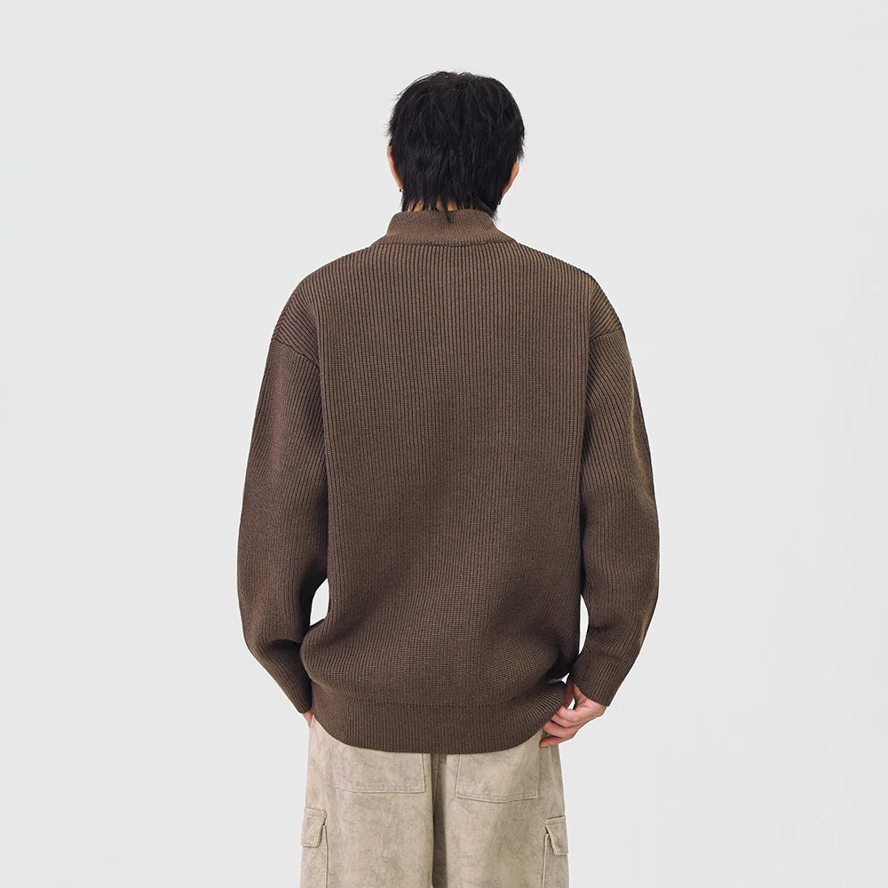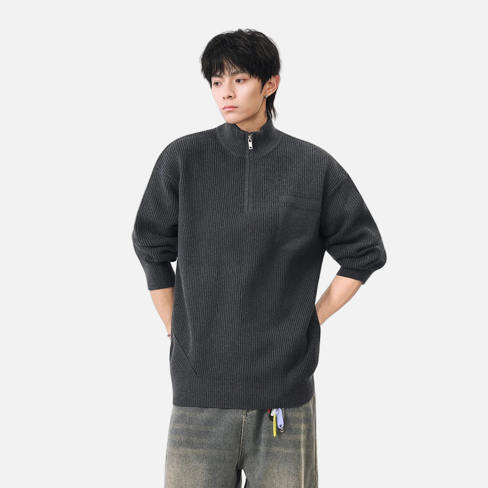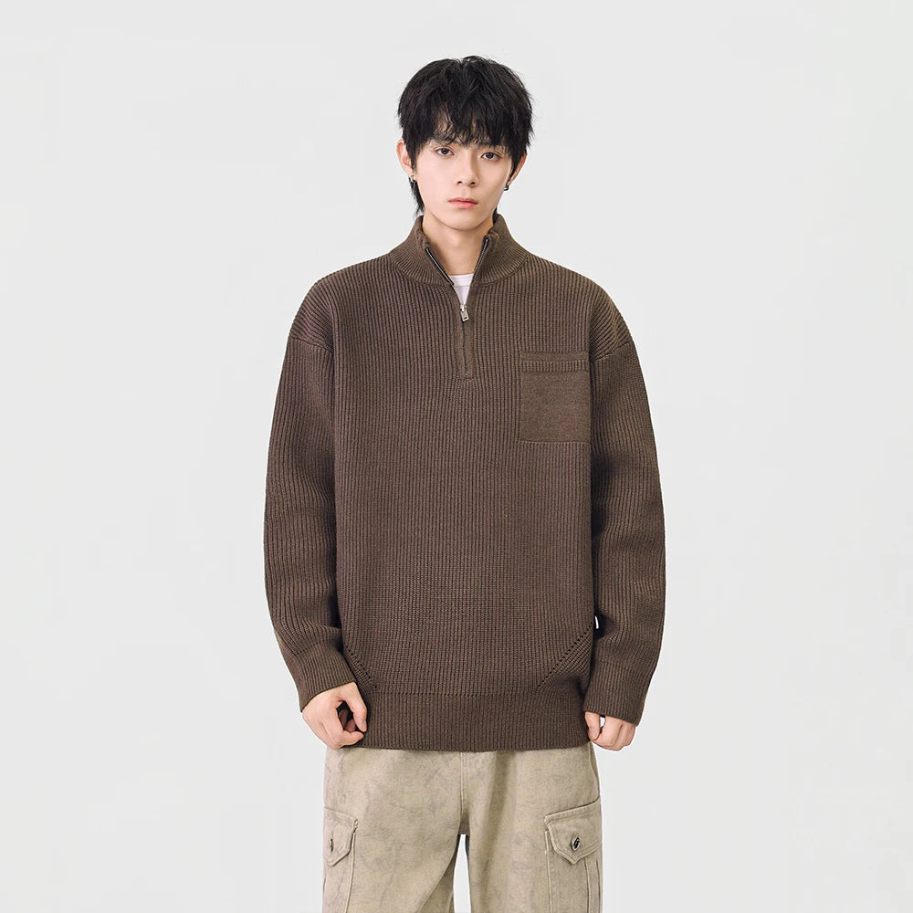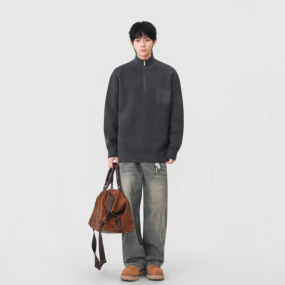 Soft Ribbed Knit Mock Neck Half Zipper Sweater