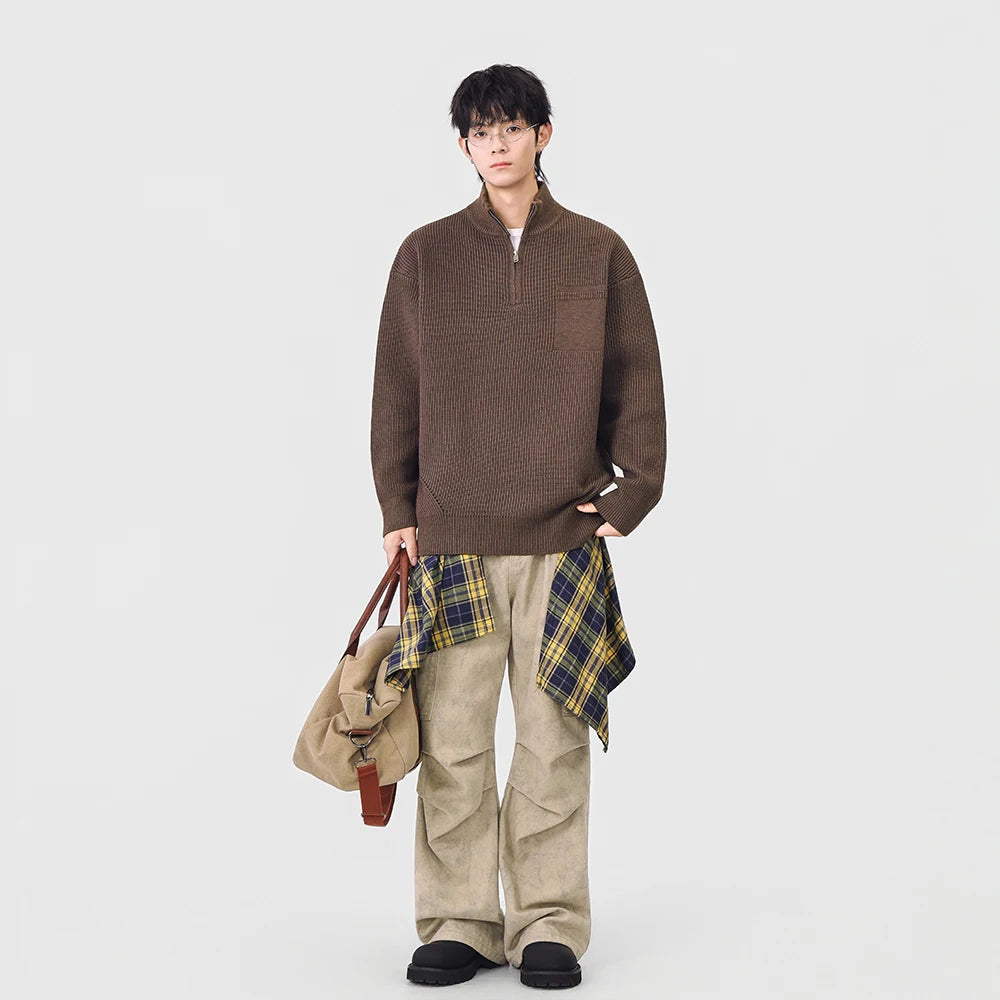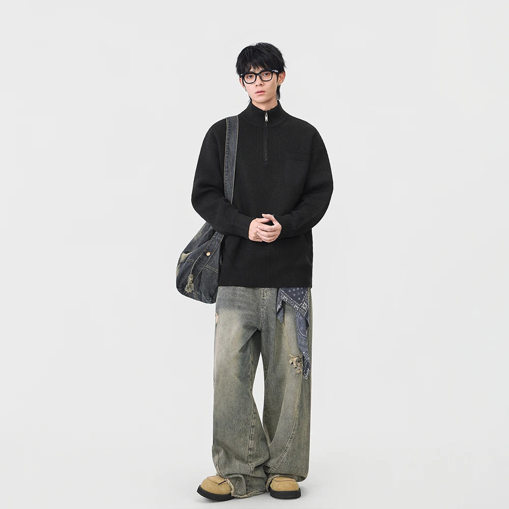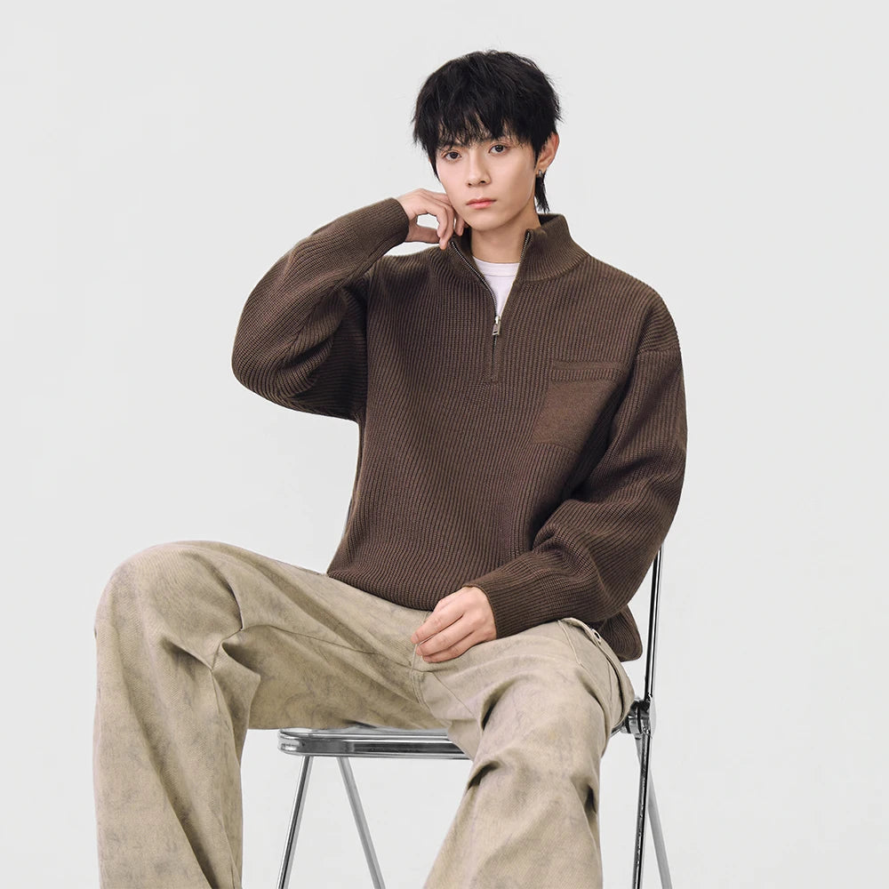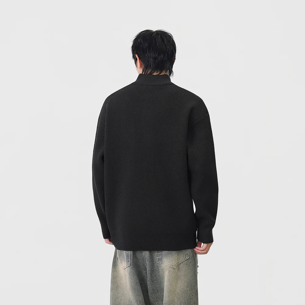 Soft Ribbed Knit Mock Neck Half Zipper Sweater