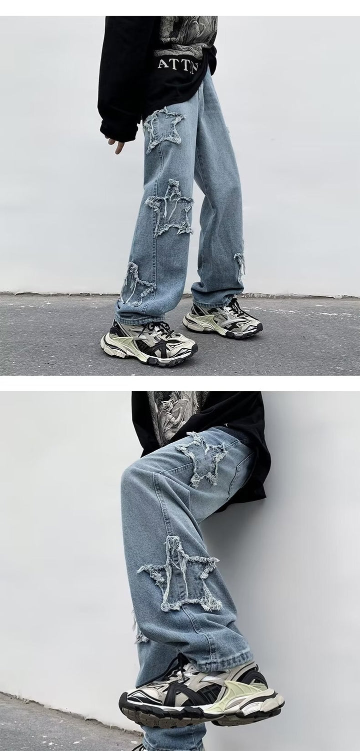 Baggy-Jeans mit Sternen-Handtuchstickerei