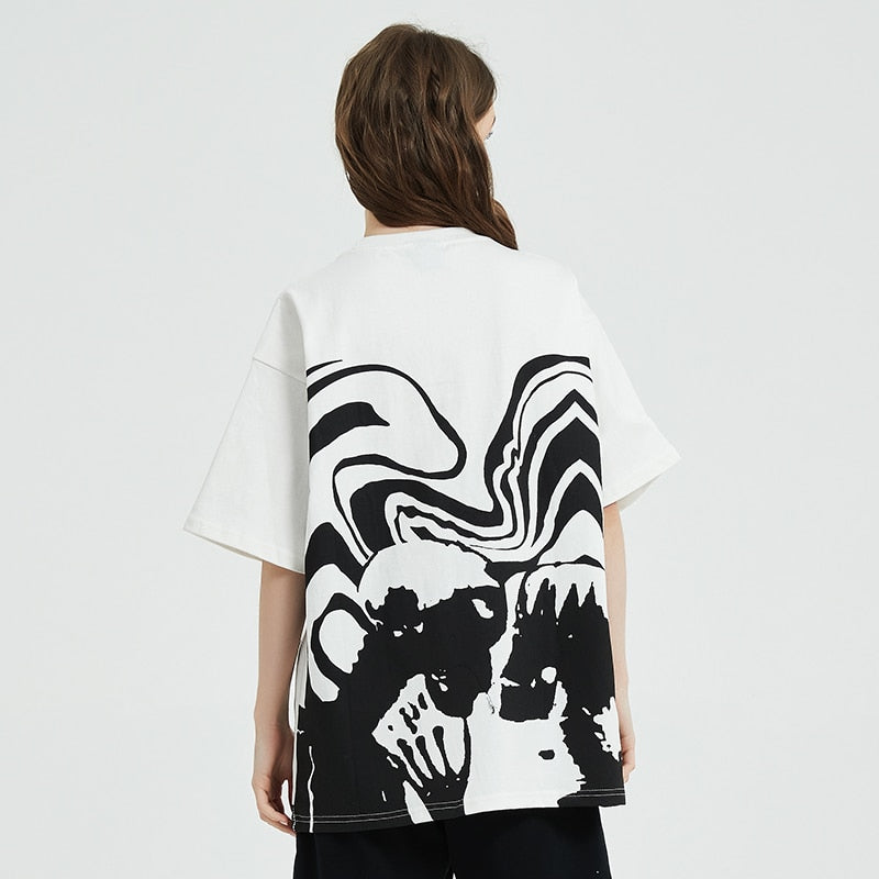 Erleben Sie Komfort, Mode und Stil mit unserem Devil In The Love T-Shirt mit übergroßem O-Ausschnitt und einzigartigem Totenkopfmuster. Dieses zeitlose Stück ist aus weicher, hochwertiger Baumwolle gefertigt und wird in jeder Garderobe ein auffälliges Statement setzen.