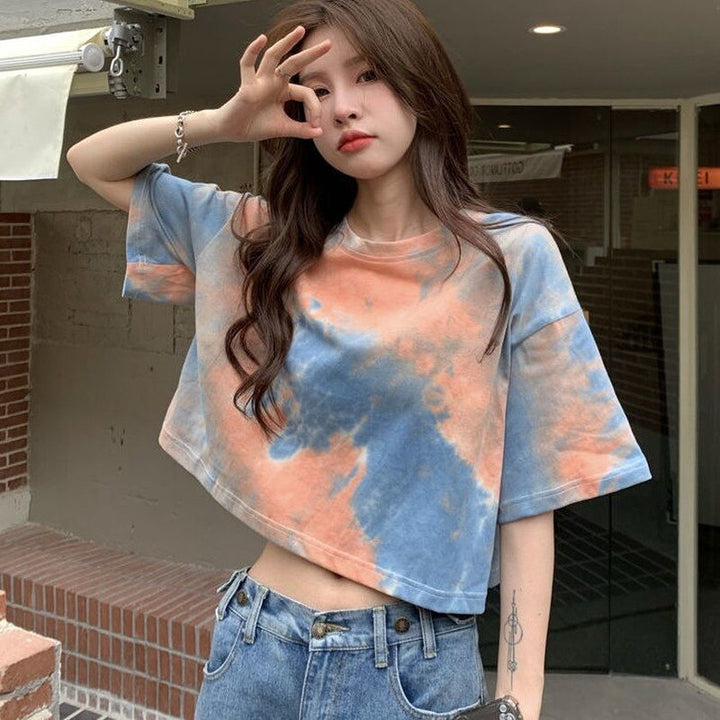 Buntes, übergroßes Crop-Top mit Batikmuster