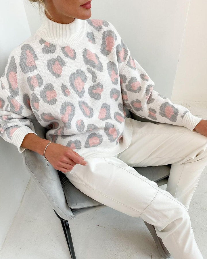 Rollkragen-Leopard-Frauen-Pullover